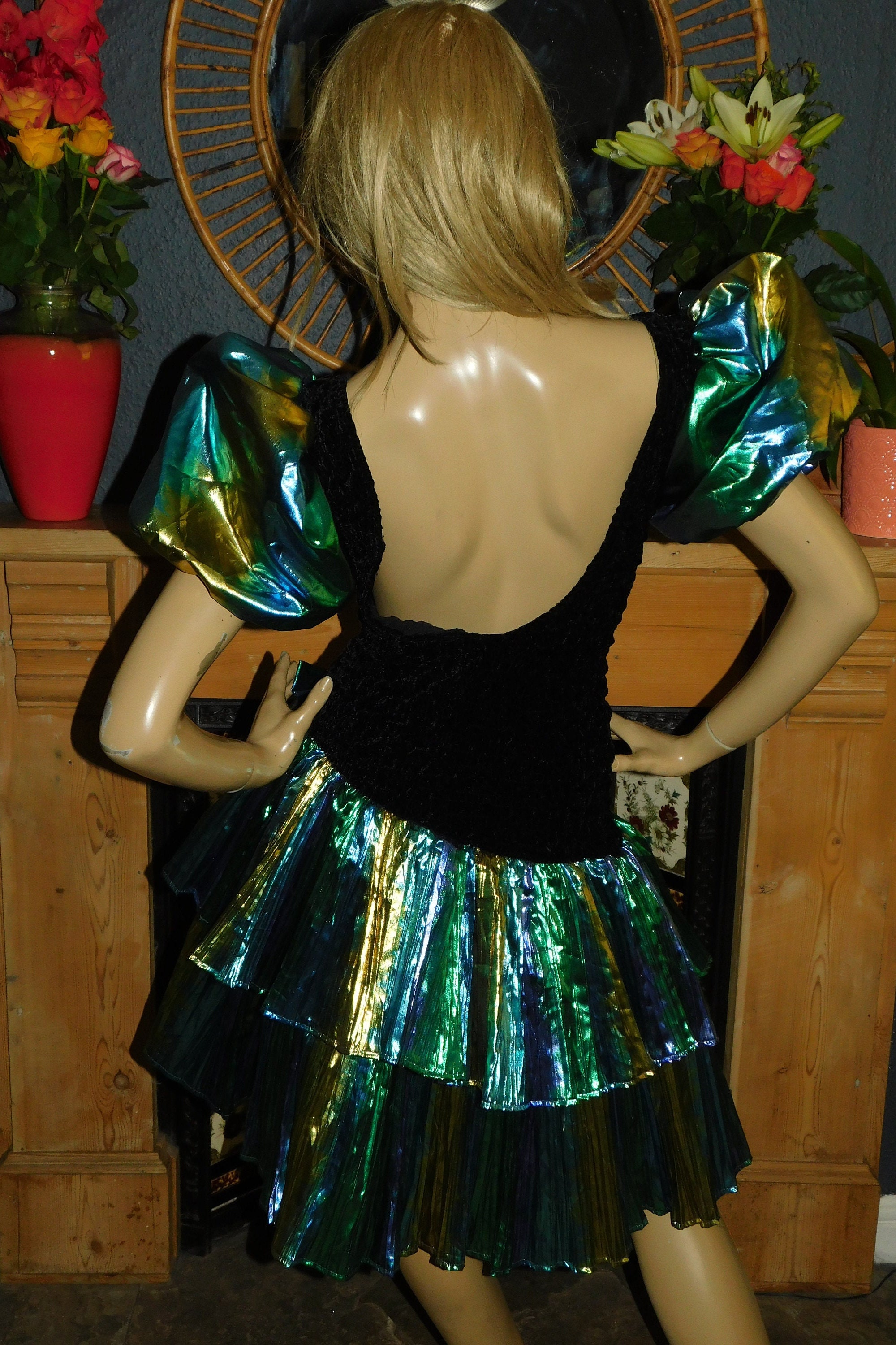 Contrasting multicoloured metallic puff sleeves and skirt