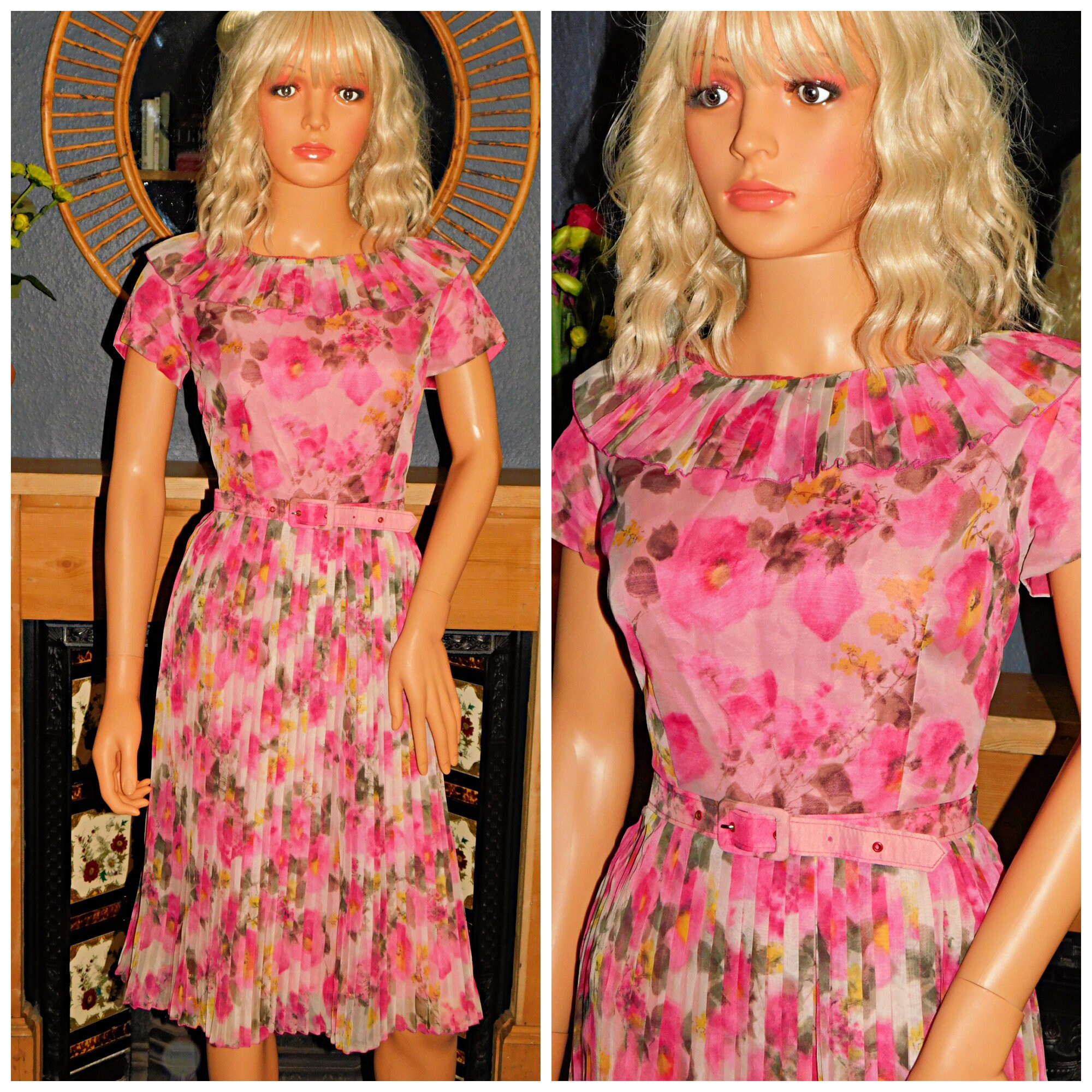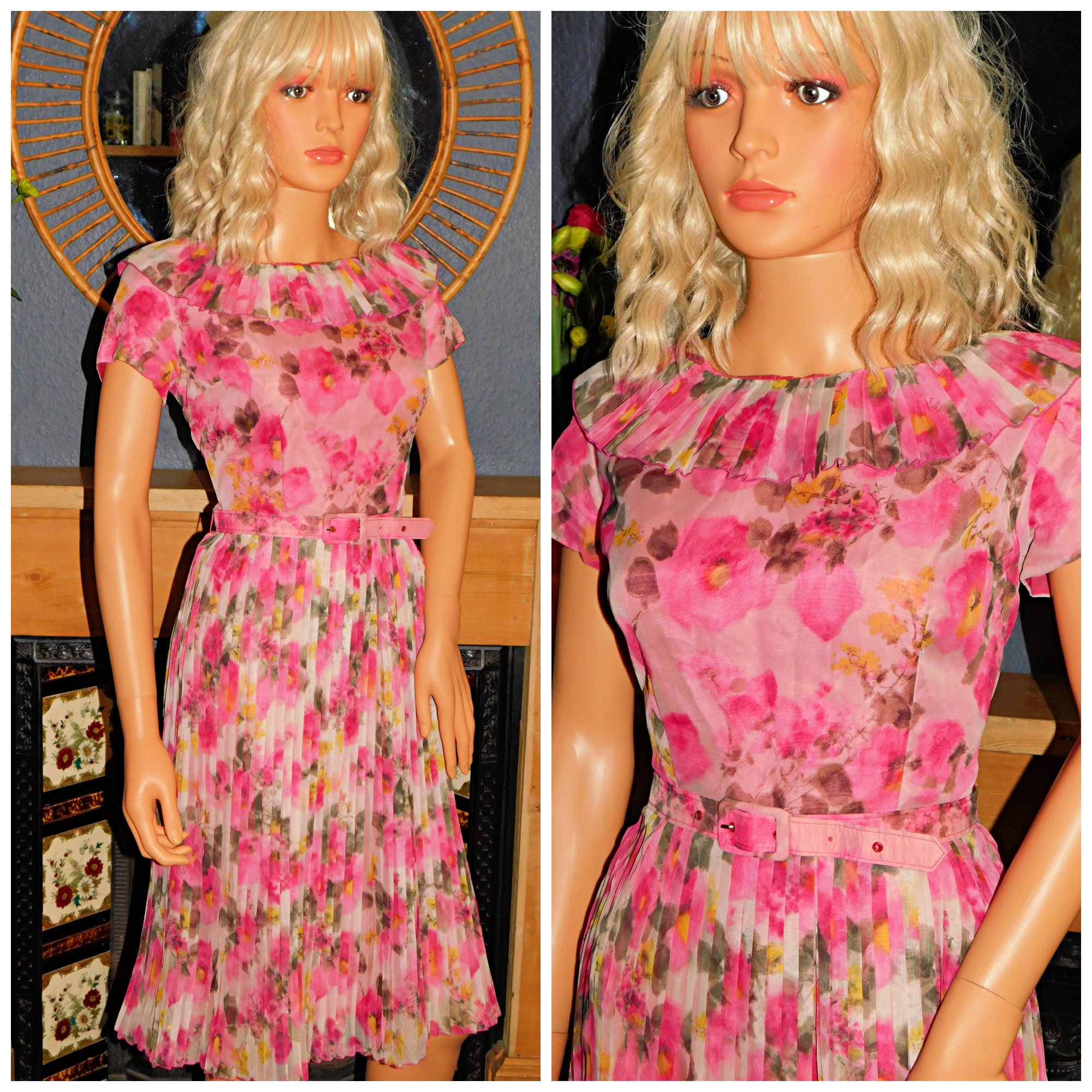 Stunning original 50s tea dress in a pink floral/rose print