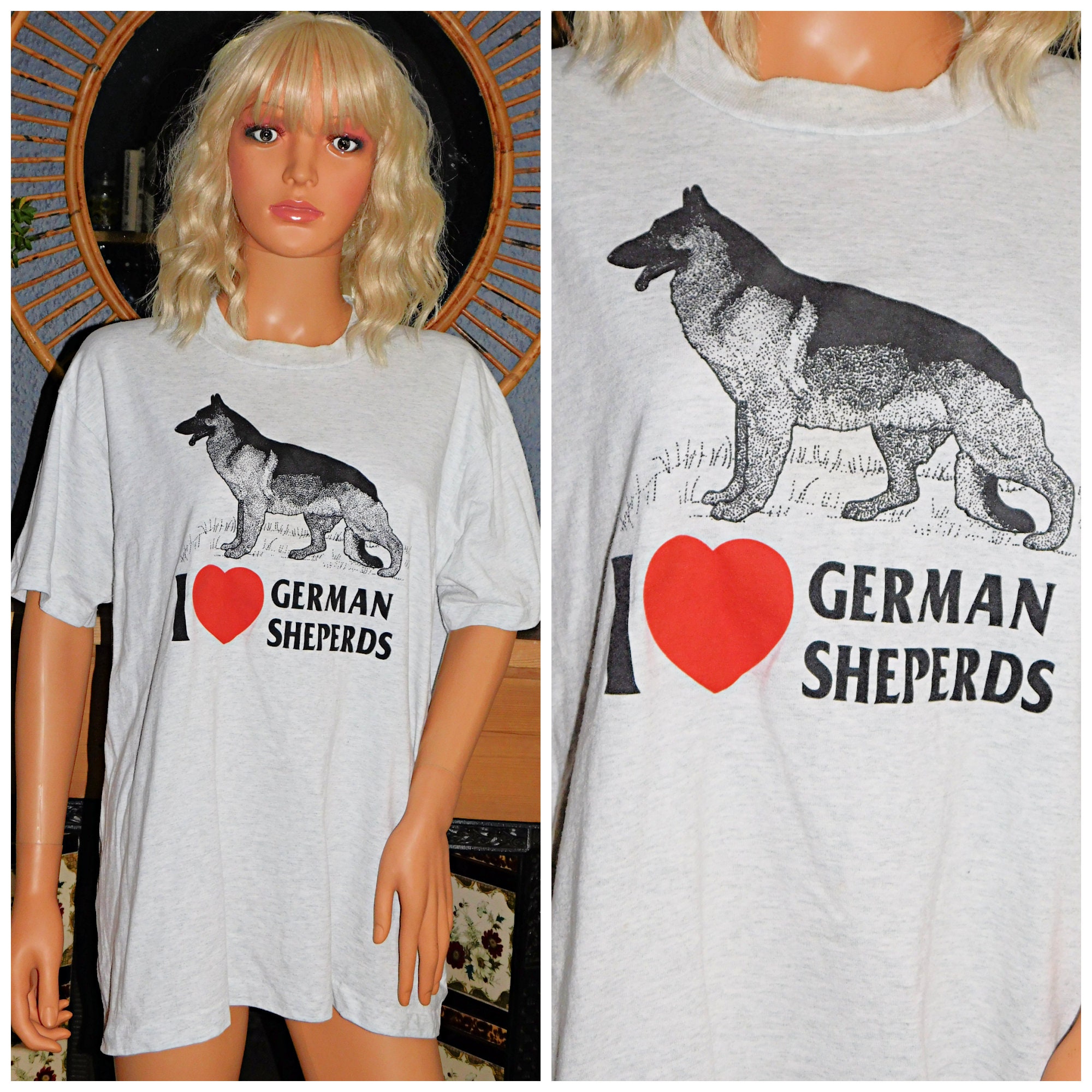 Vintage 90s Soft SINGLE Stitch 1990s German Shepherd T shirt M L Grey Unisex Graphic Screen Stars 50 50