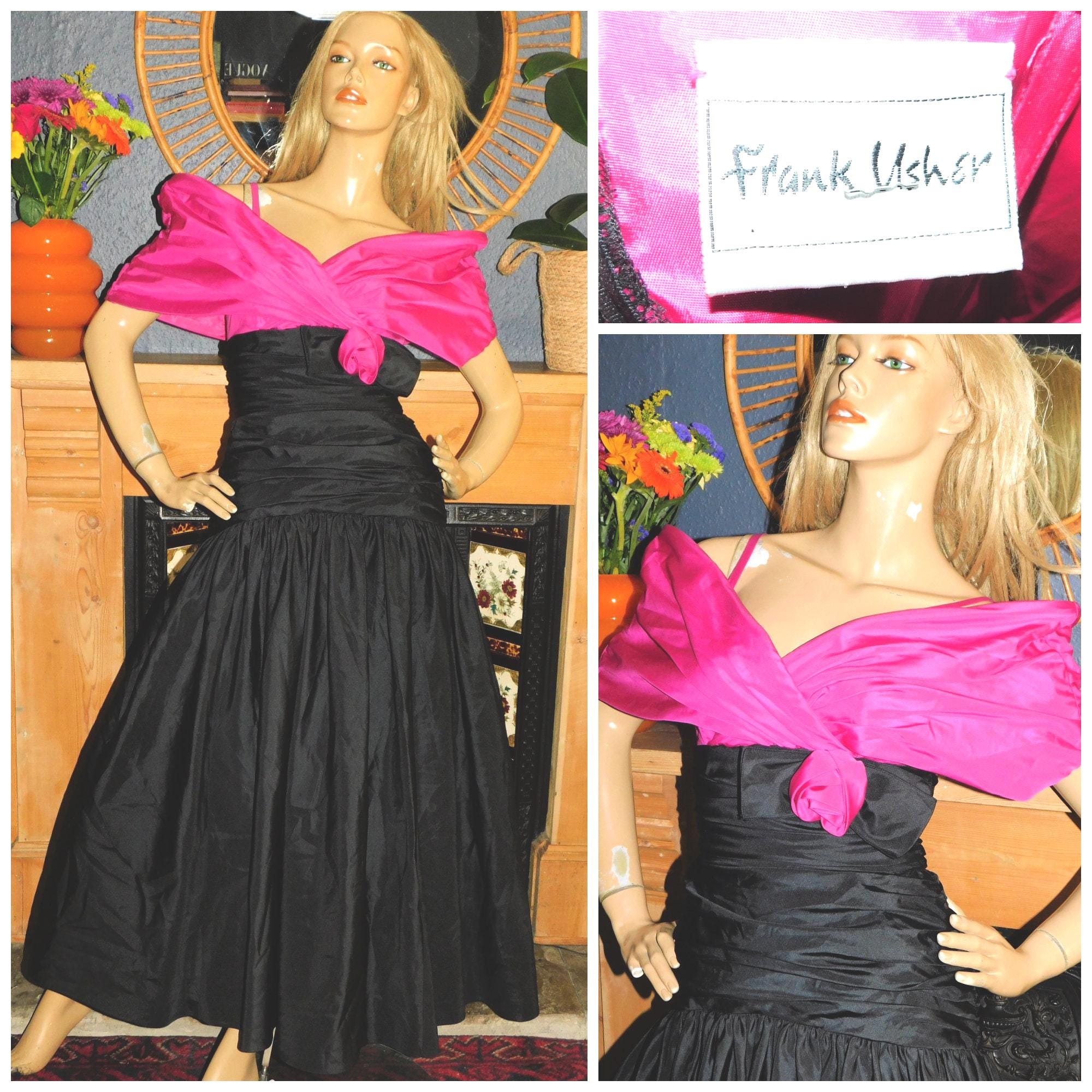 Really Stunning original 80s Frank Usher prom dress in bubblegum pink/black