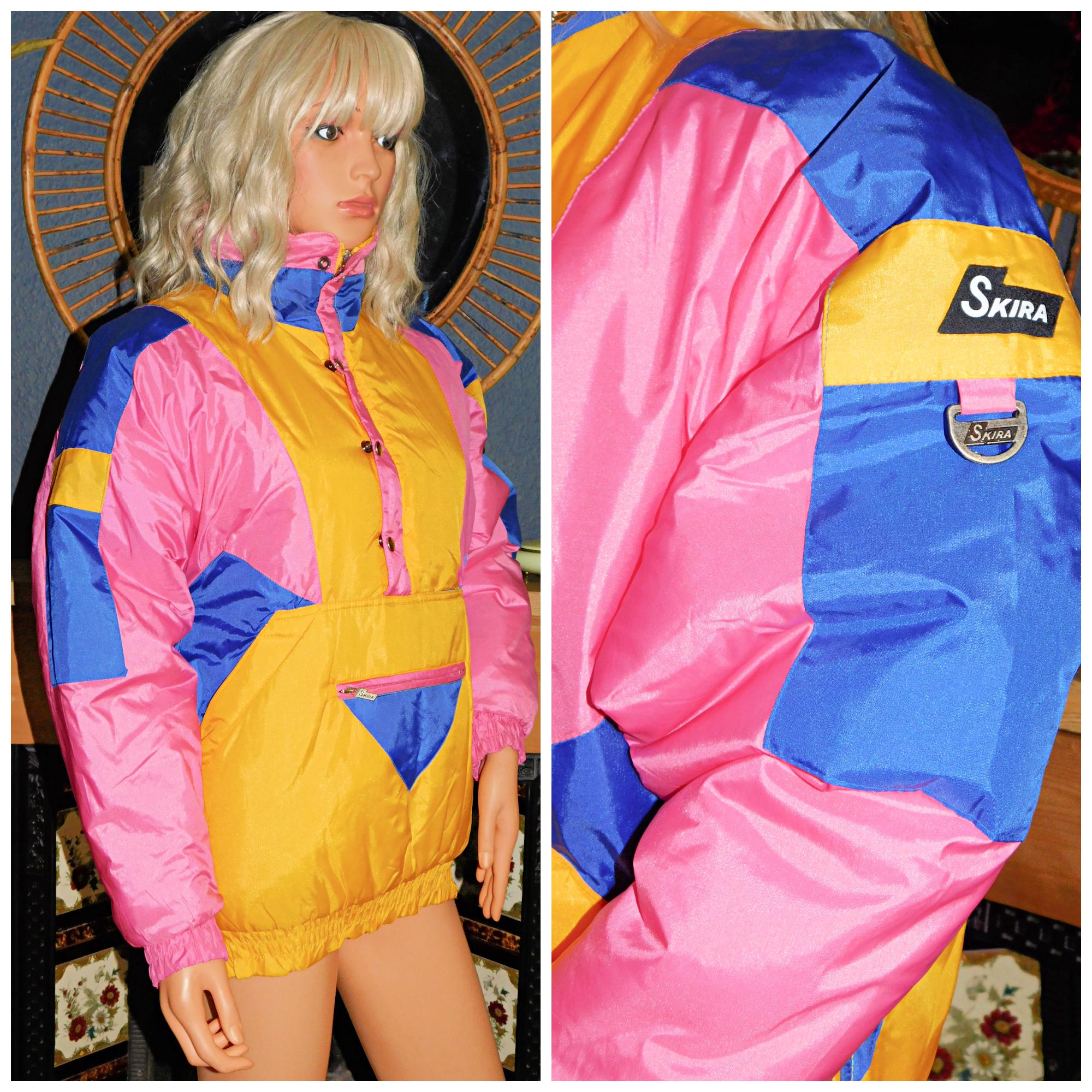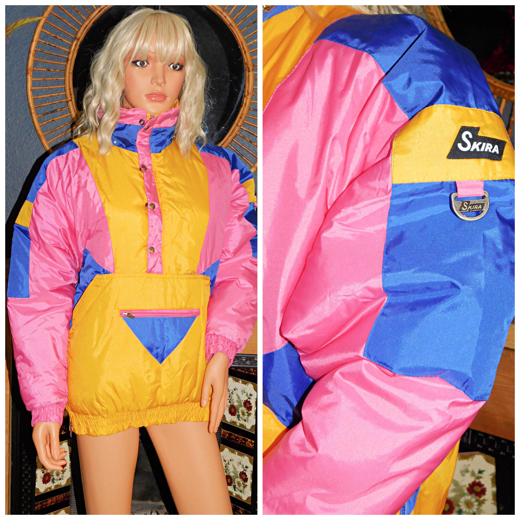 Very Kitsch 80s/90s padded Ski jacket/top in bright yellow/pink/blue