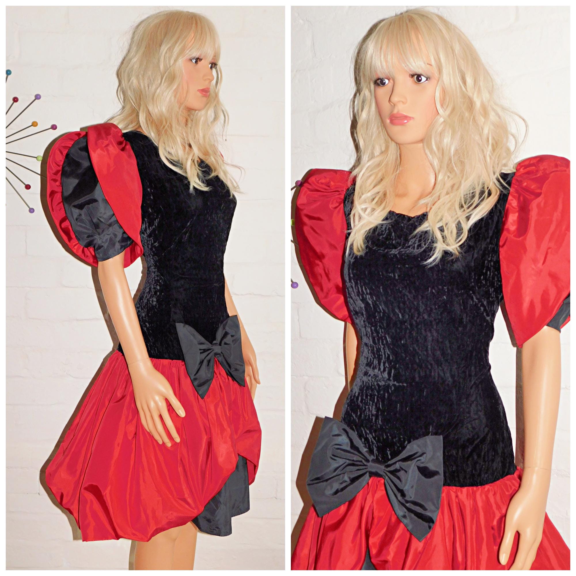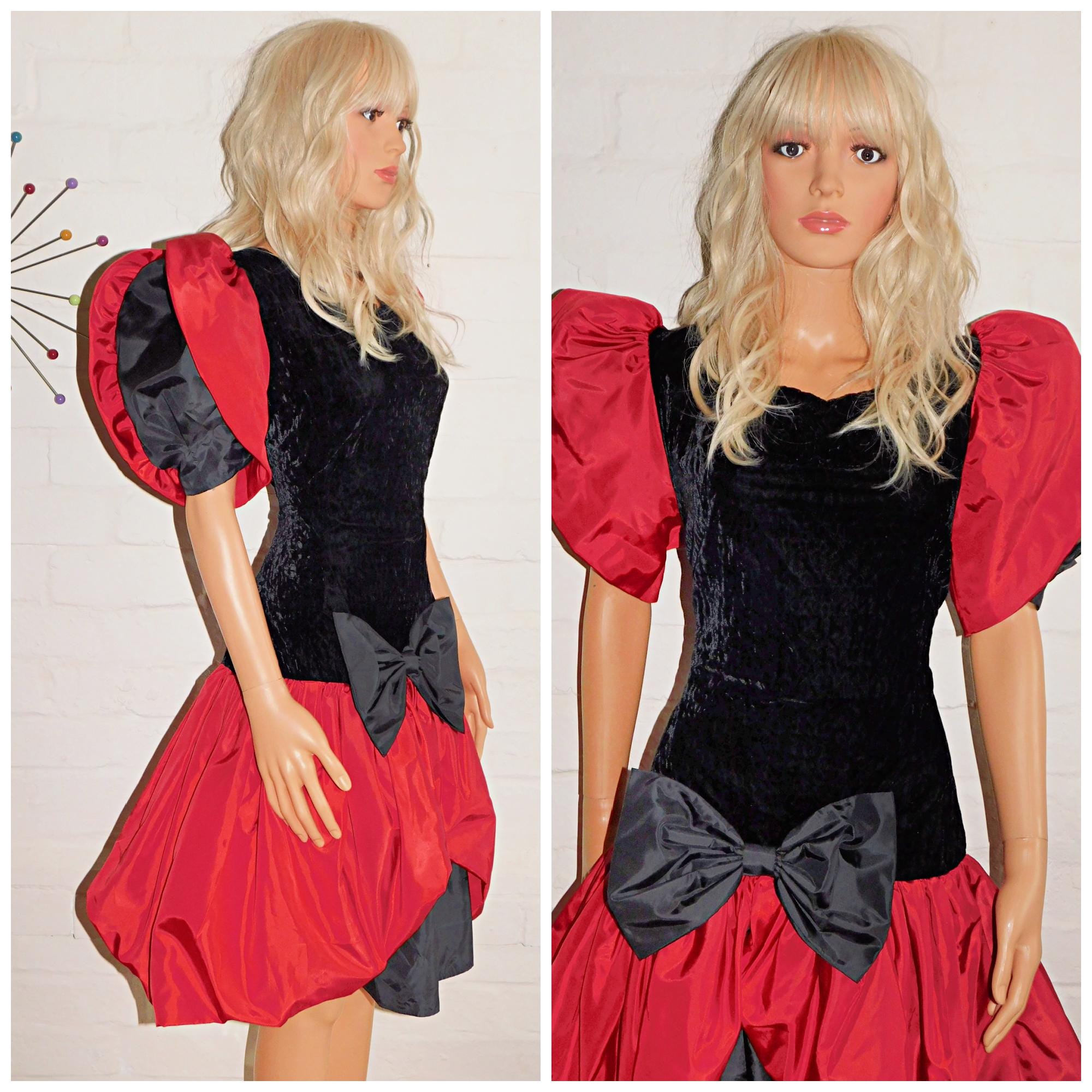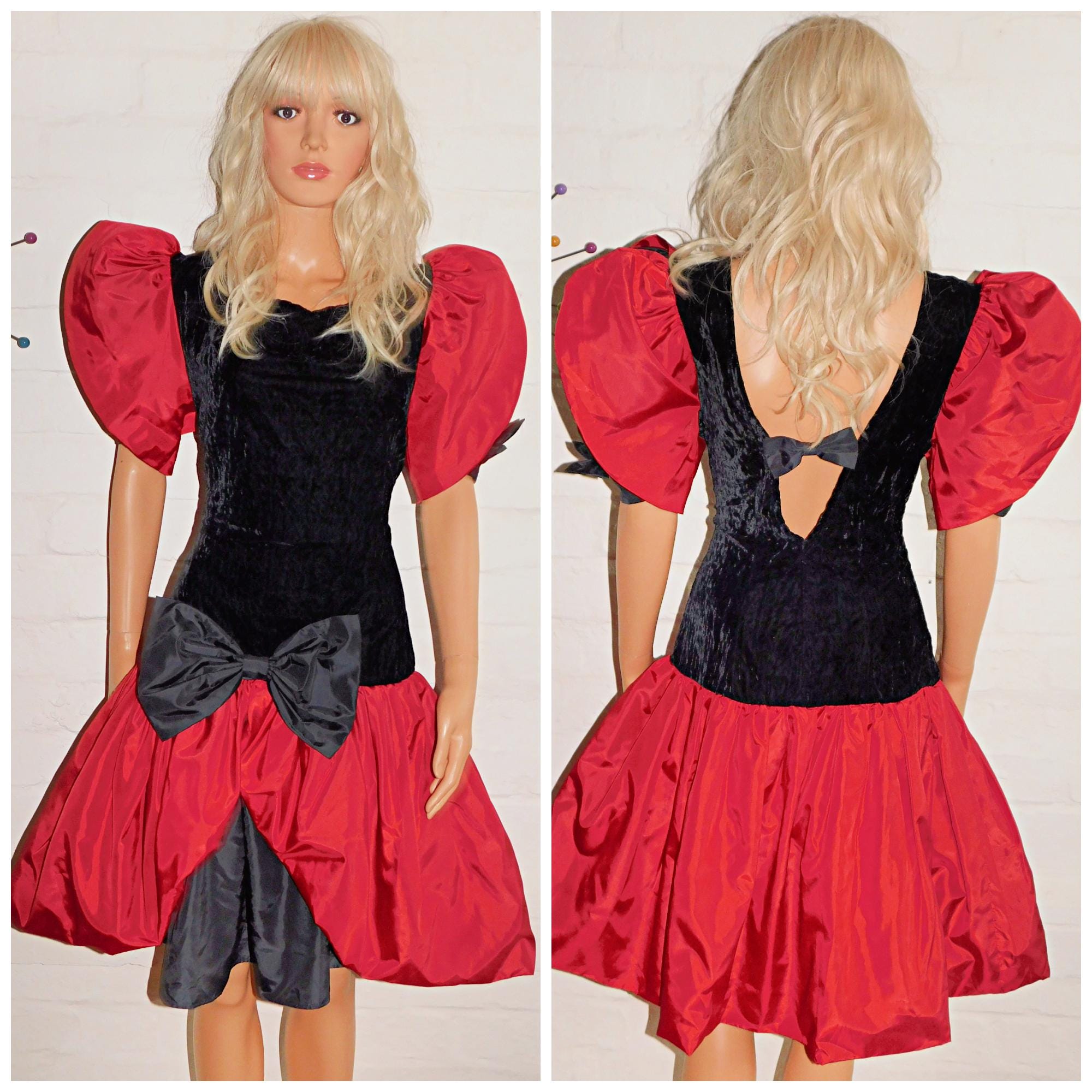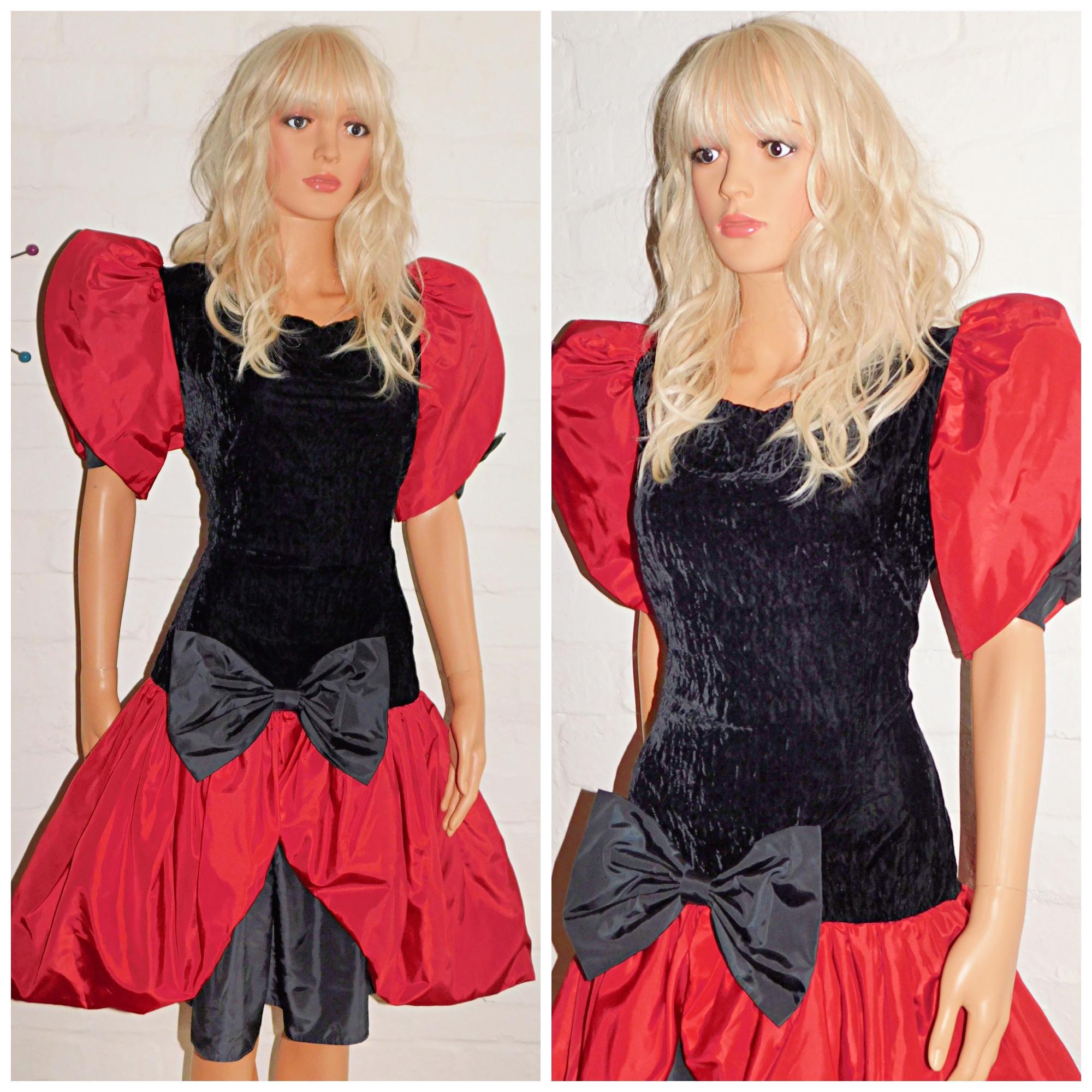 Fabulously Kitsch Eighties Avant Garde prom dress in red/black