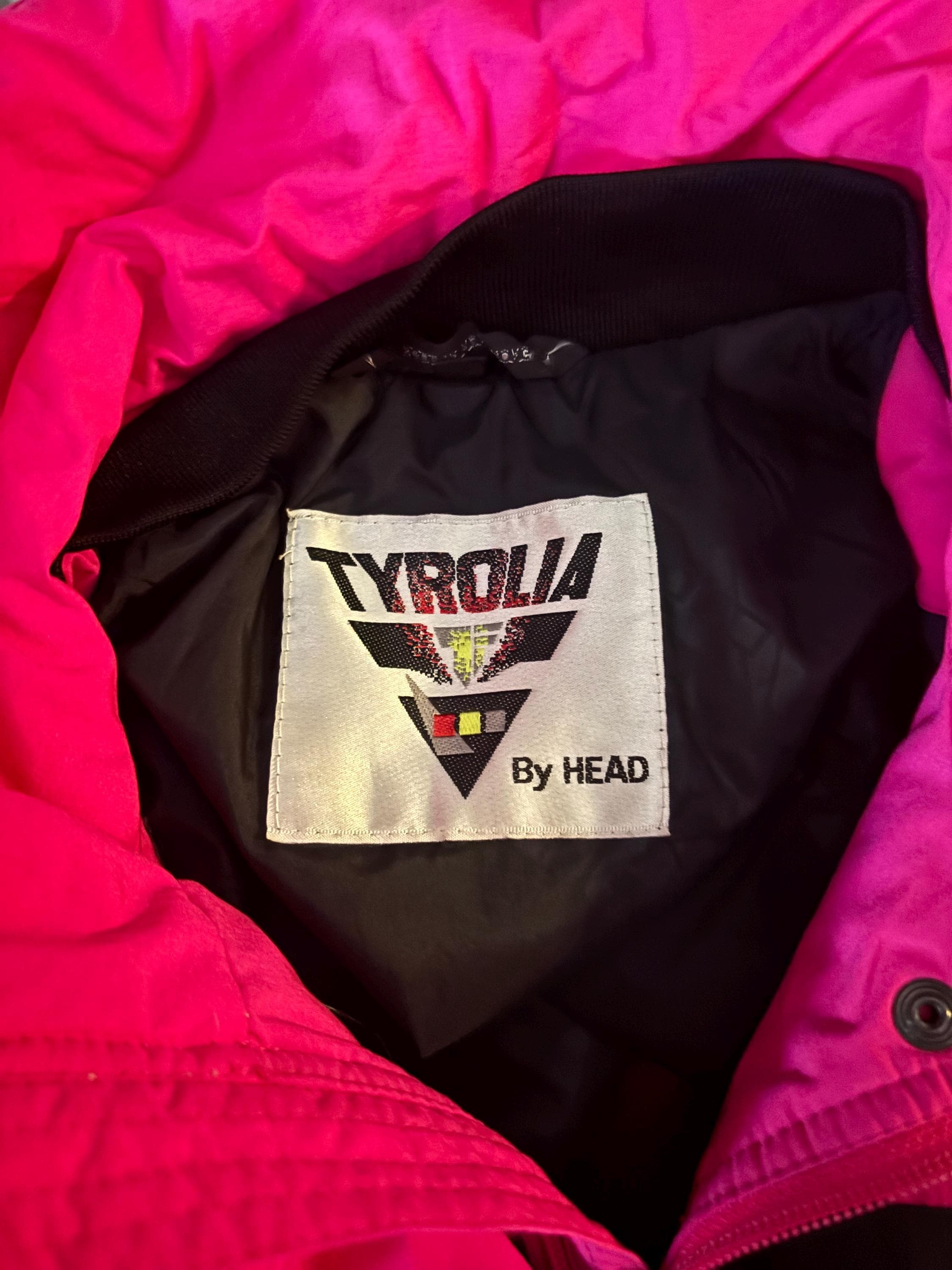 Vintage 80s 90s Tyrolia HEAD Neon Pink COLOUR Block Padded Ski Jacket M 1980s Kitsch Pockets Puffer 1990s