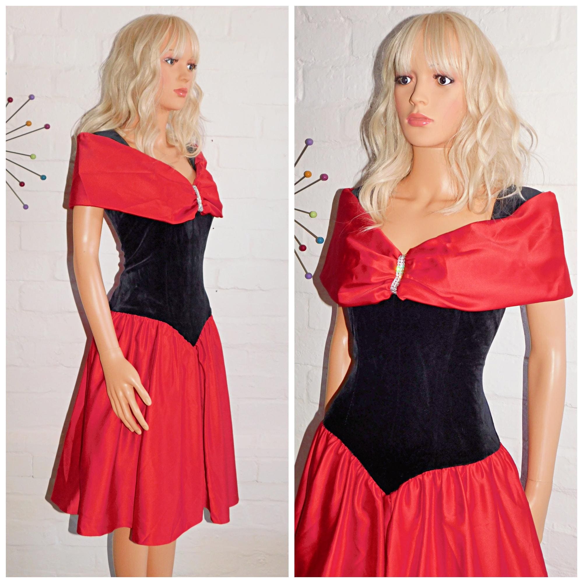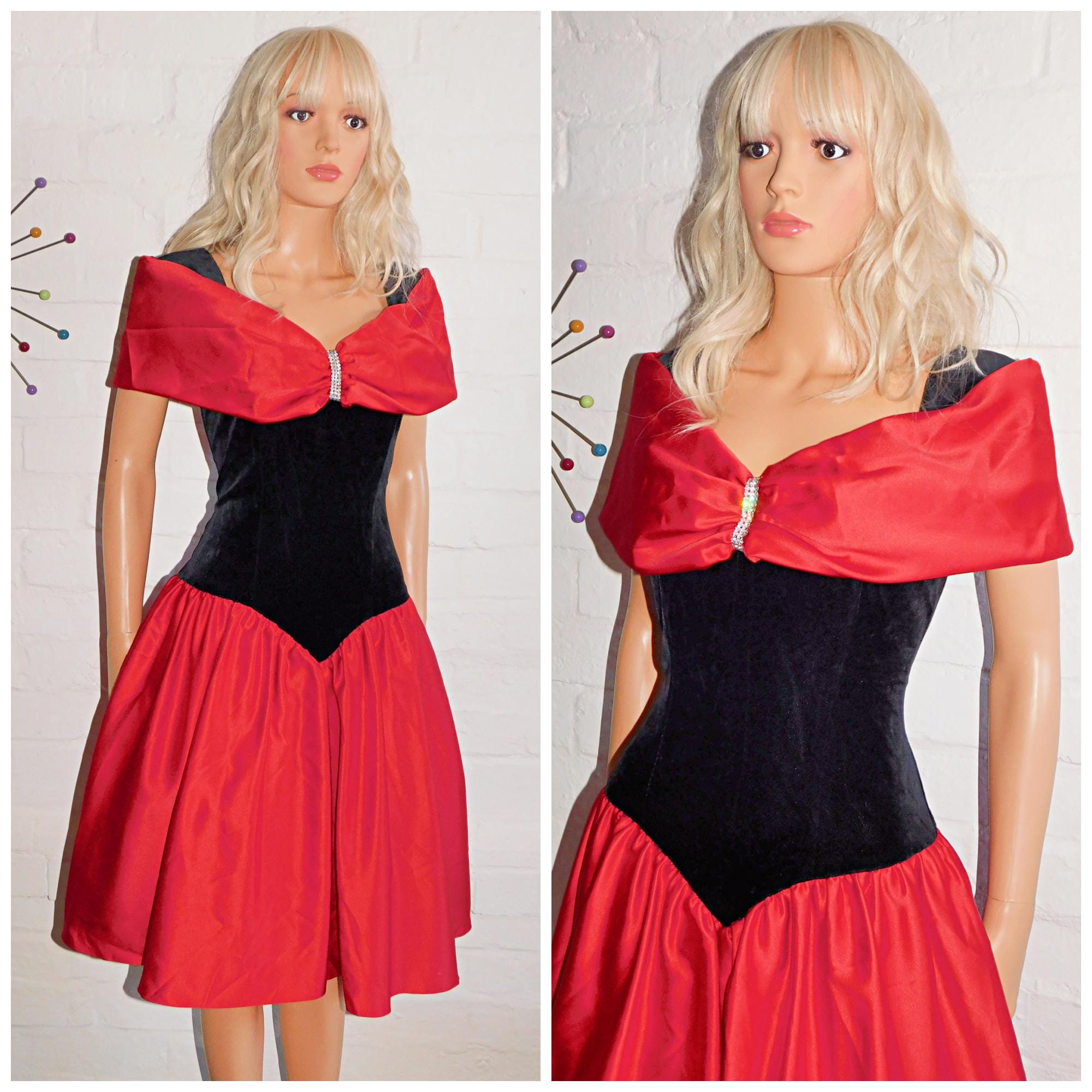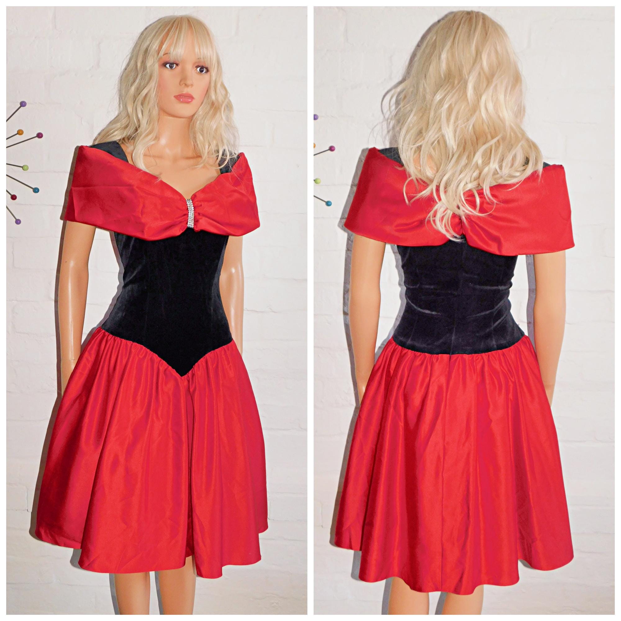 Super pretty Eighties prom dress in black/red by Vera Mont