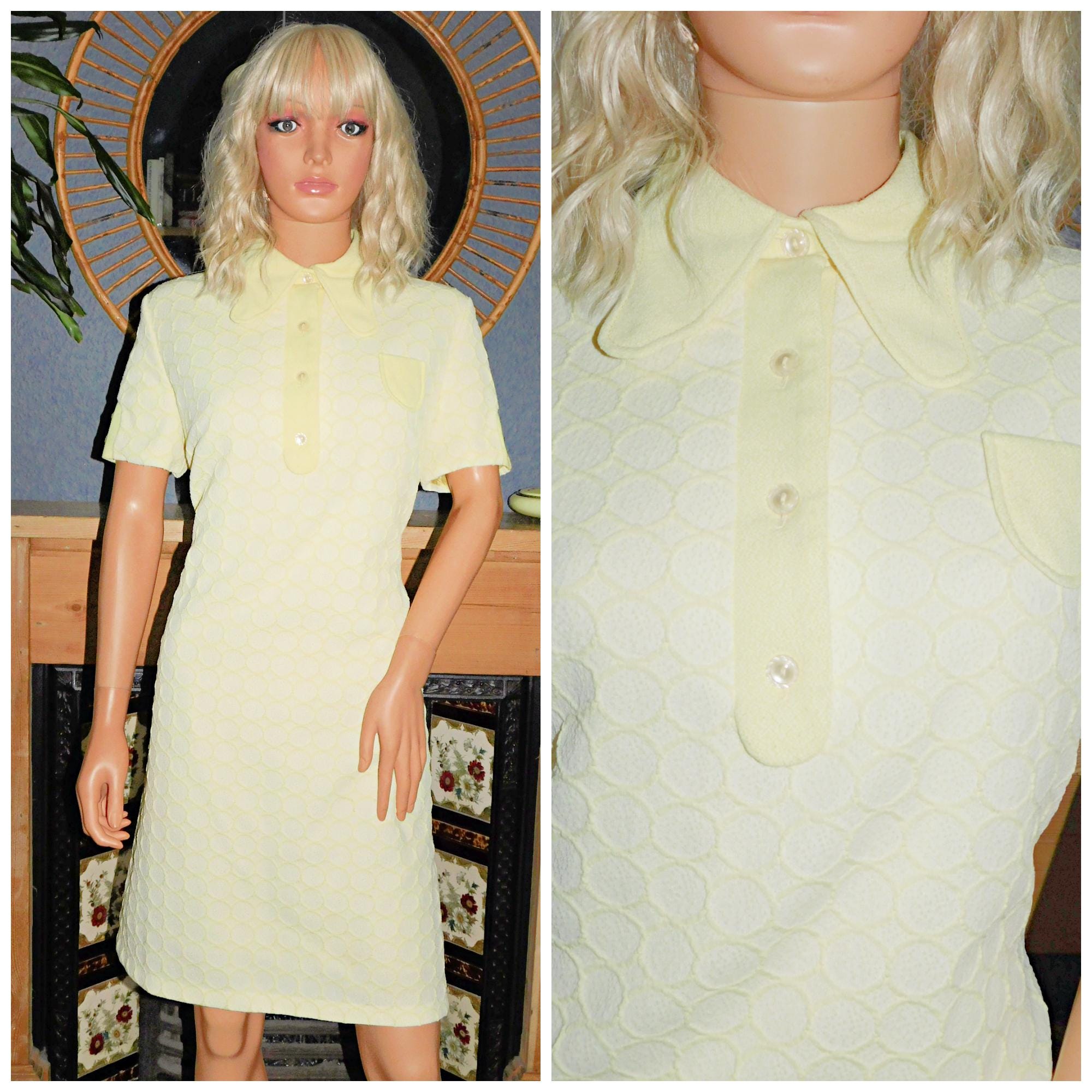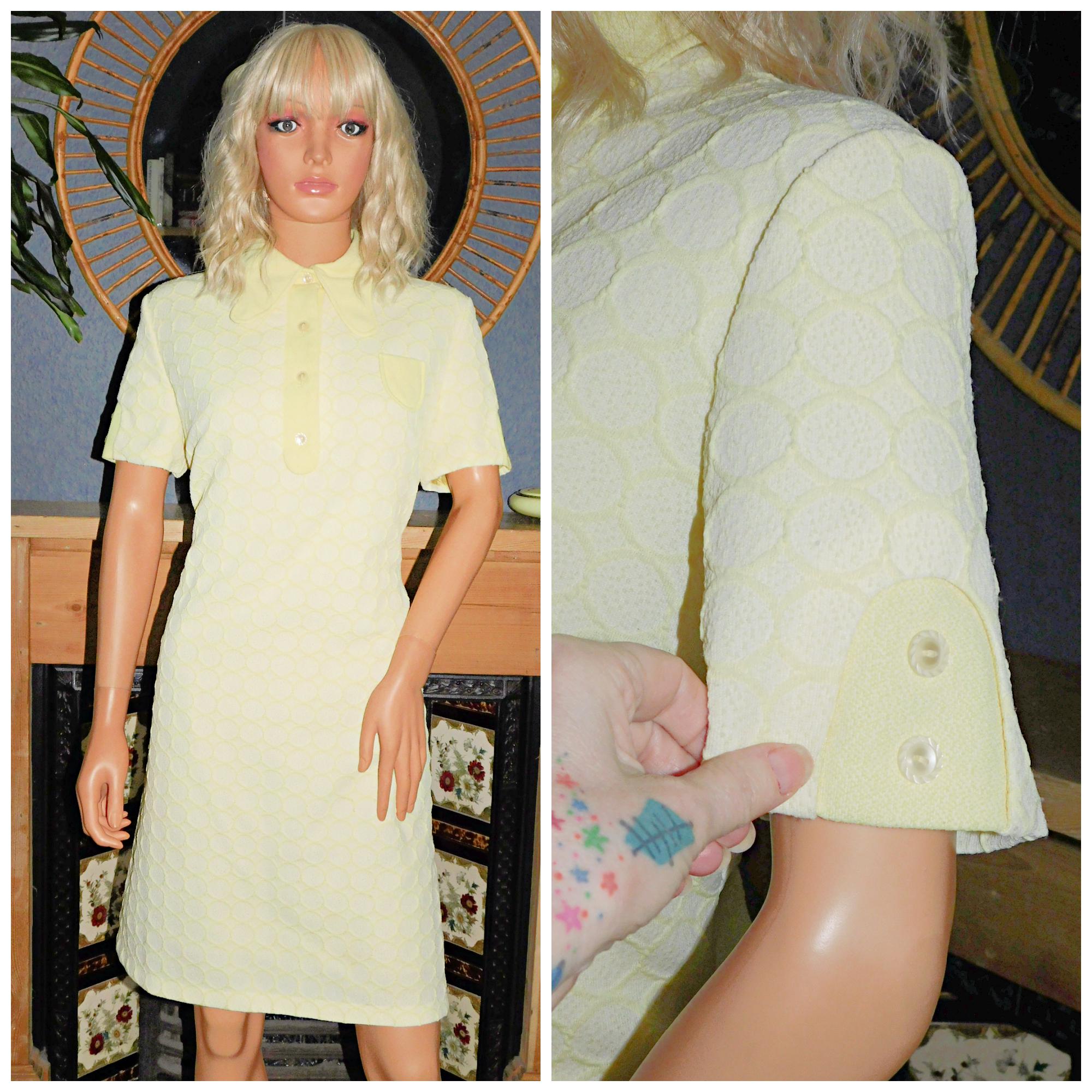 Sixties Mod dress in a honeycomb textured lemon yellow