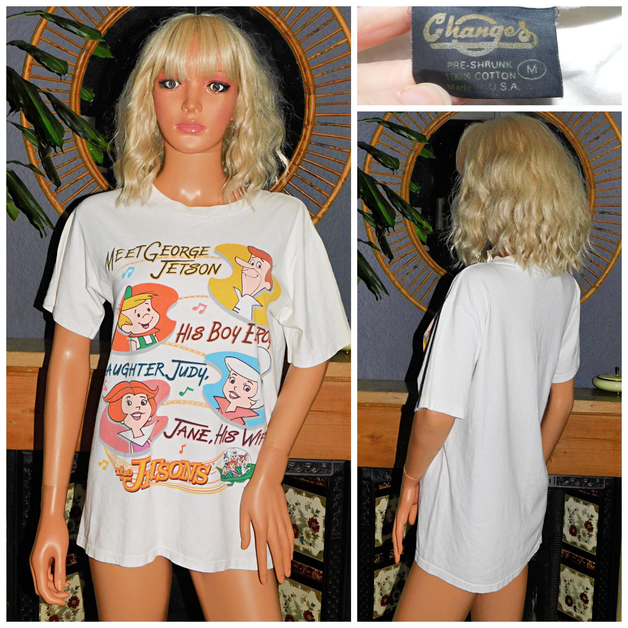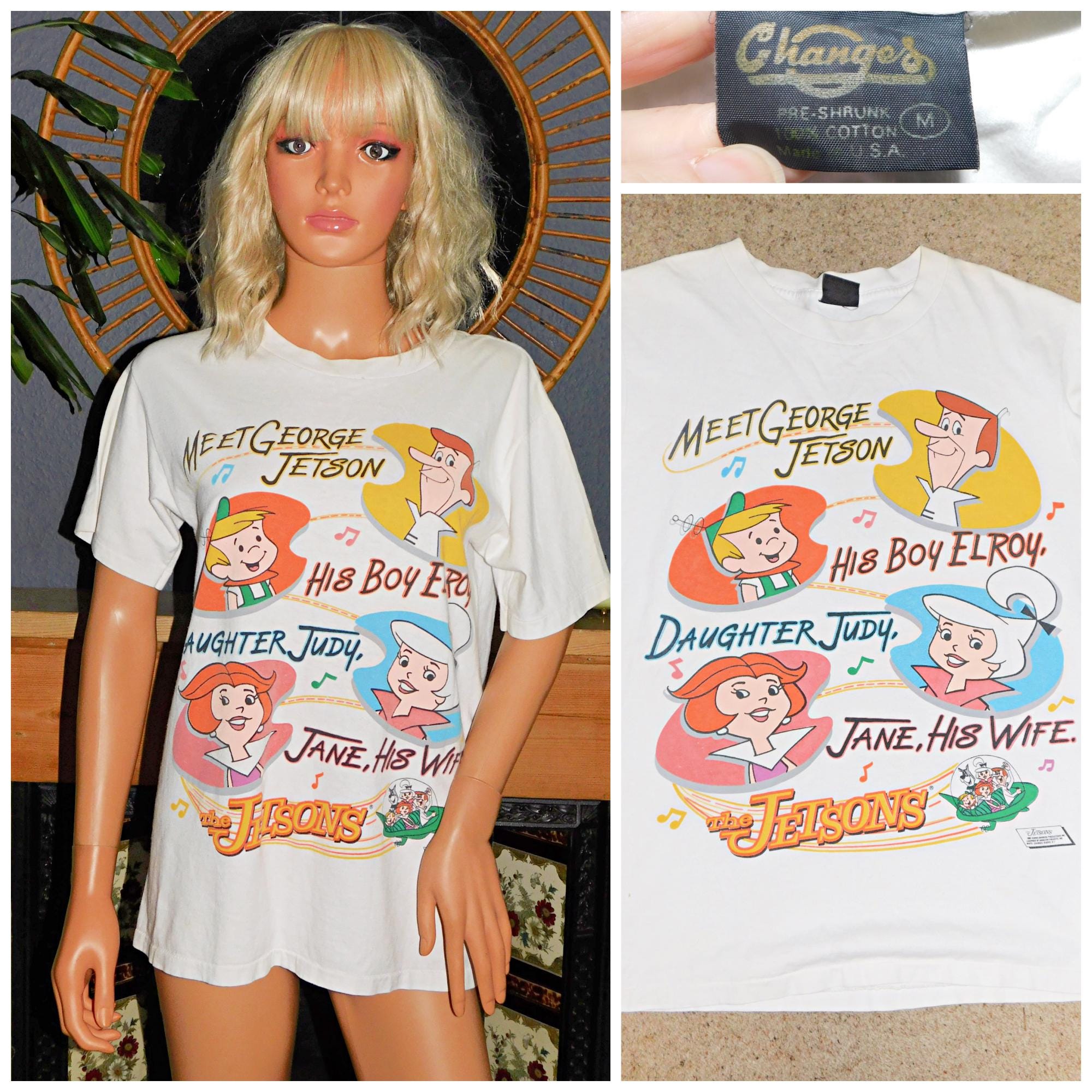 Vintage 90s Soft SINGLE Stitch JETSONS T Shirt S M 1990s Graphic White Tee Cotton