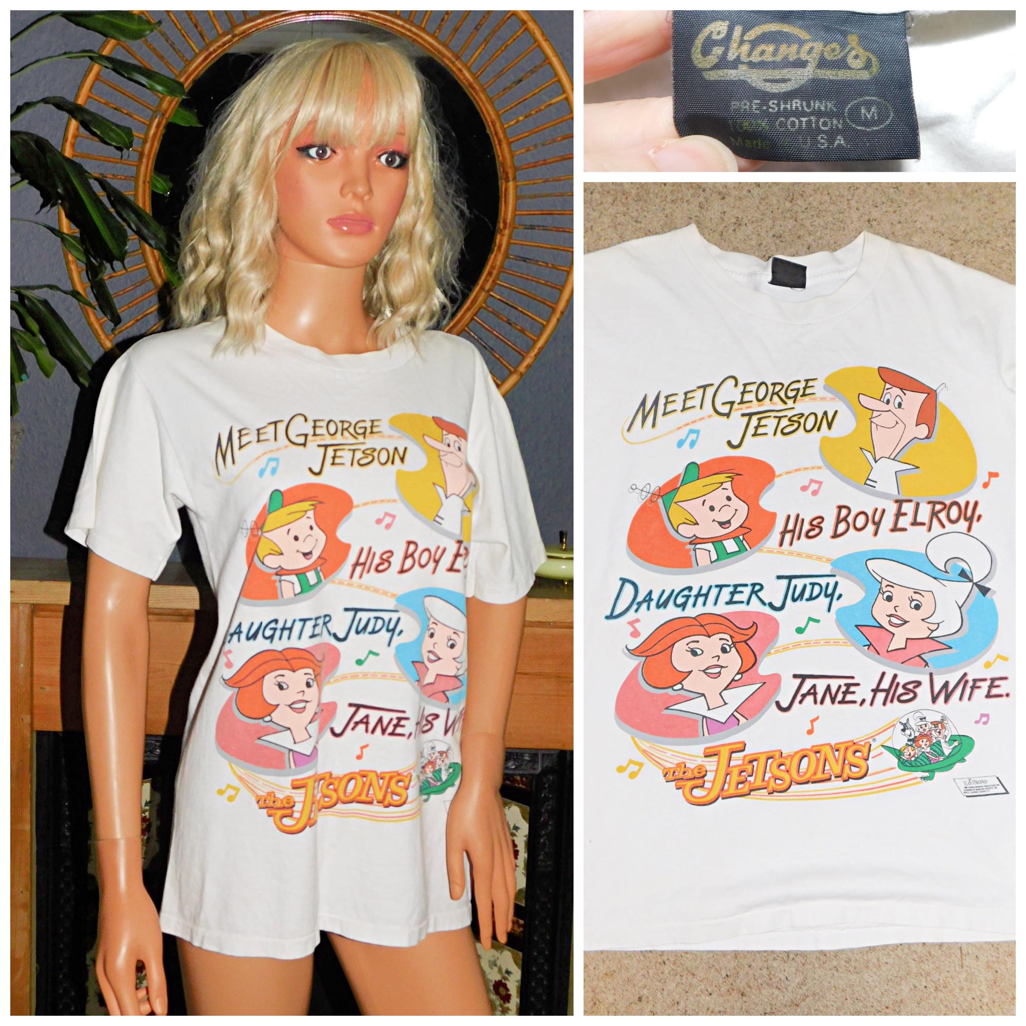 Super soft Nineties white t shirt with multicoloured Jetsons graphic