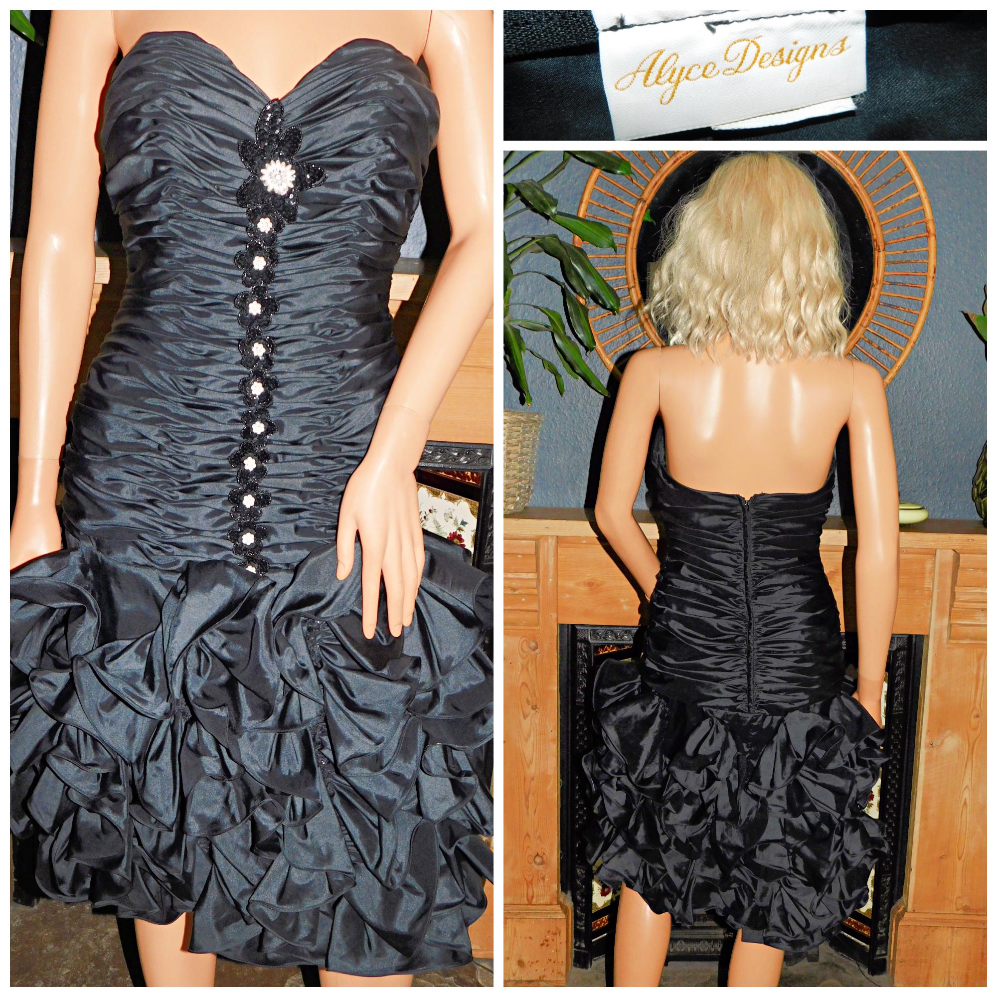 Fabulously kitsch original Eighties Avant Garde evening/prom/disco dress in black