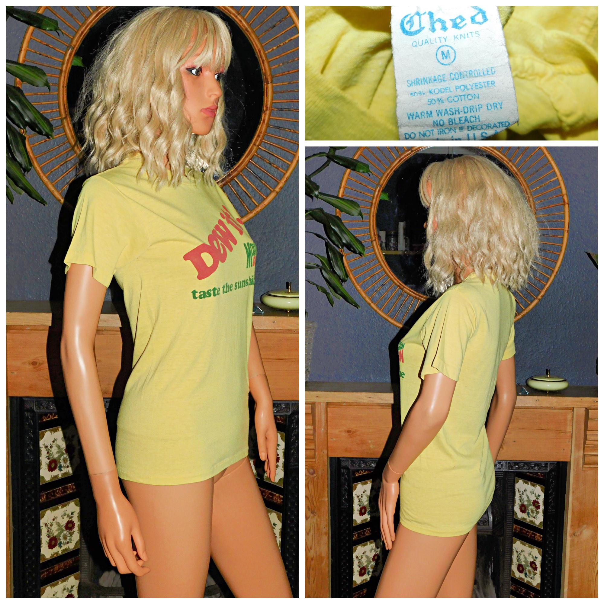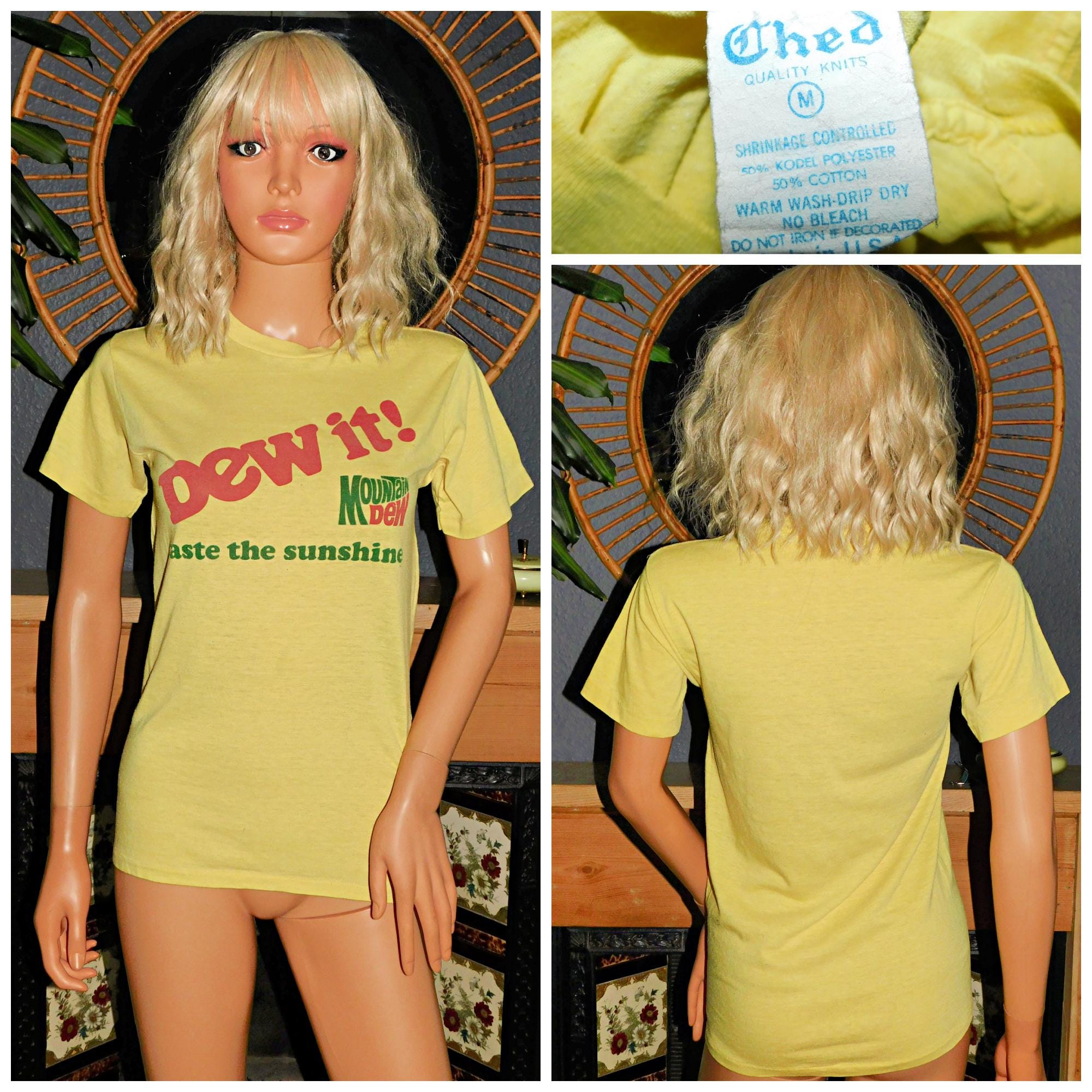 Vintage 70s Yellow Thin SINGLE STITCH Mountain Dew T Shirt 1970s Unisex Graphic 50 50