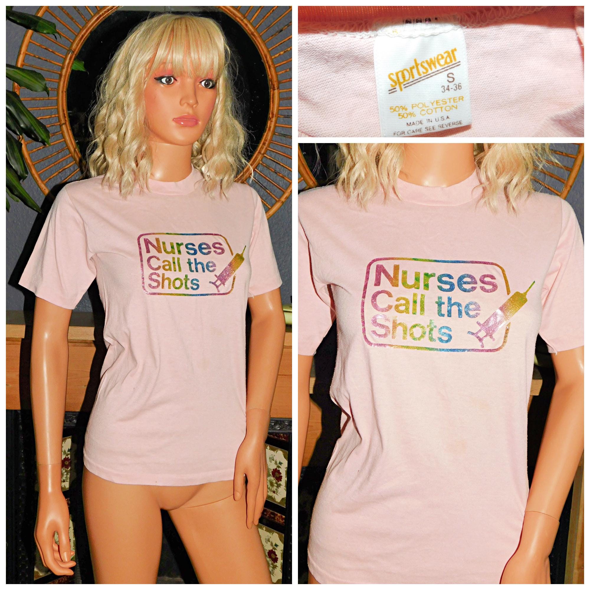 Vintage 90s Thin Soft Single Stitch Pink NURSES CALL The SHOTS Print T Shirt Xs 1990s Graphic Tee Julie