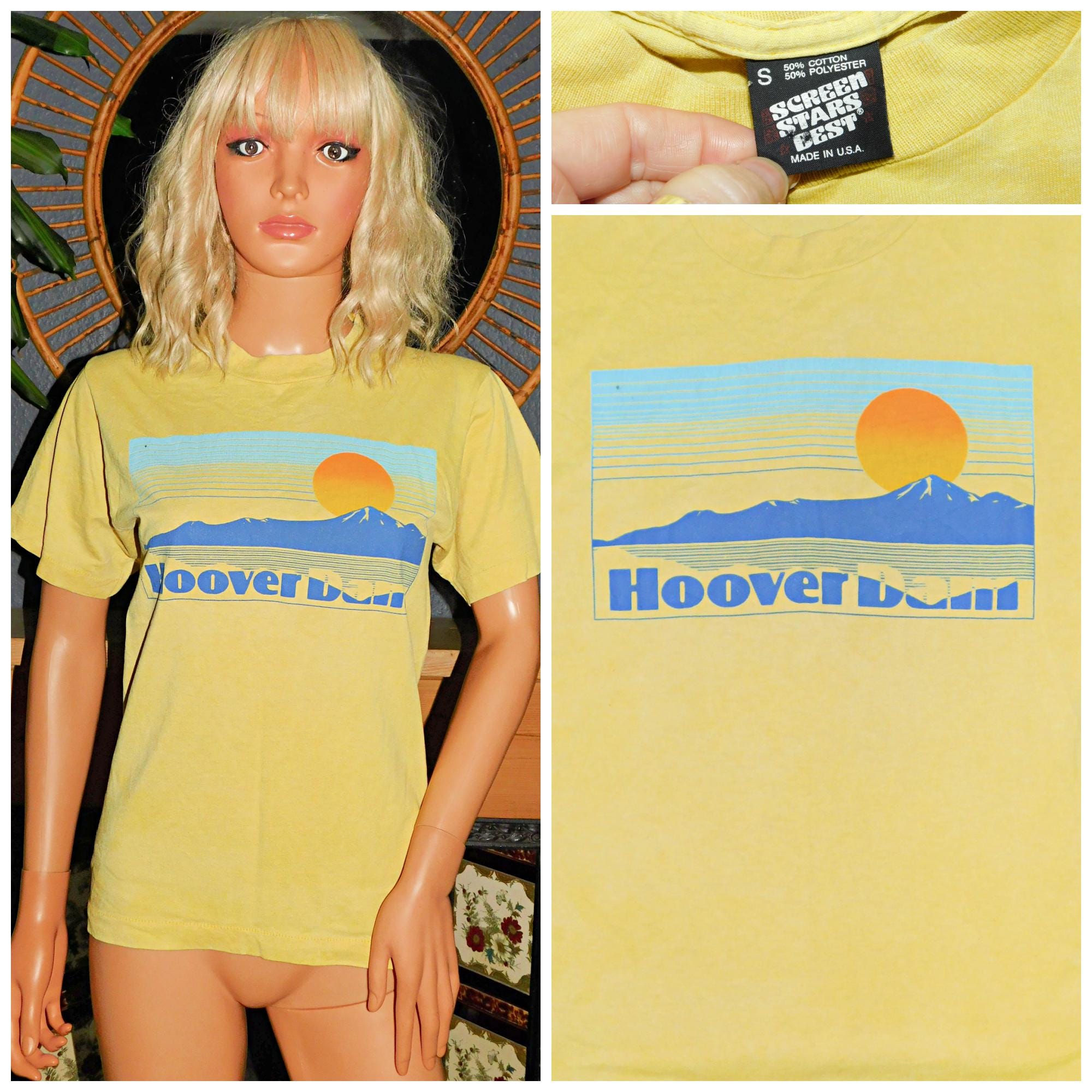 Vintage 80s 90s Soft SINGLE Stitch HOOVER DAM T Shirt Xs S 1980s 1990s Graphic Yellow Tee 50 50