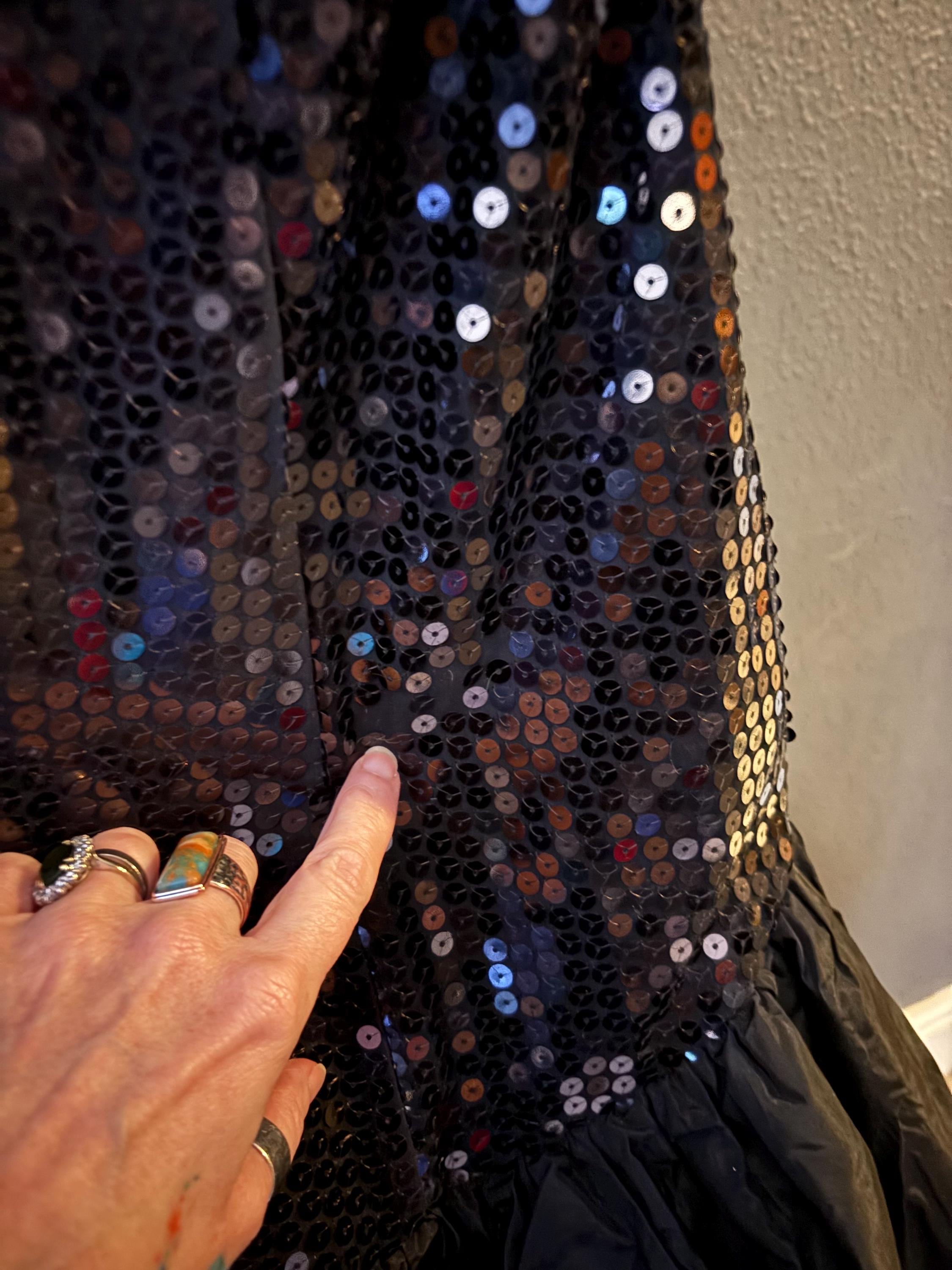 Vintage 80s Black Silver SEQUIN BOW Prom Party Dress 12 M 1980s Extreme Cocktail Evening Avant Garde Kitsch Alyce