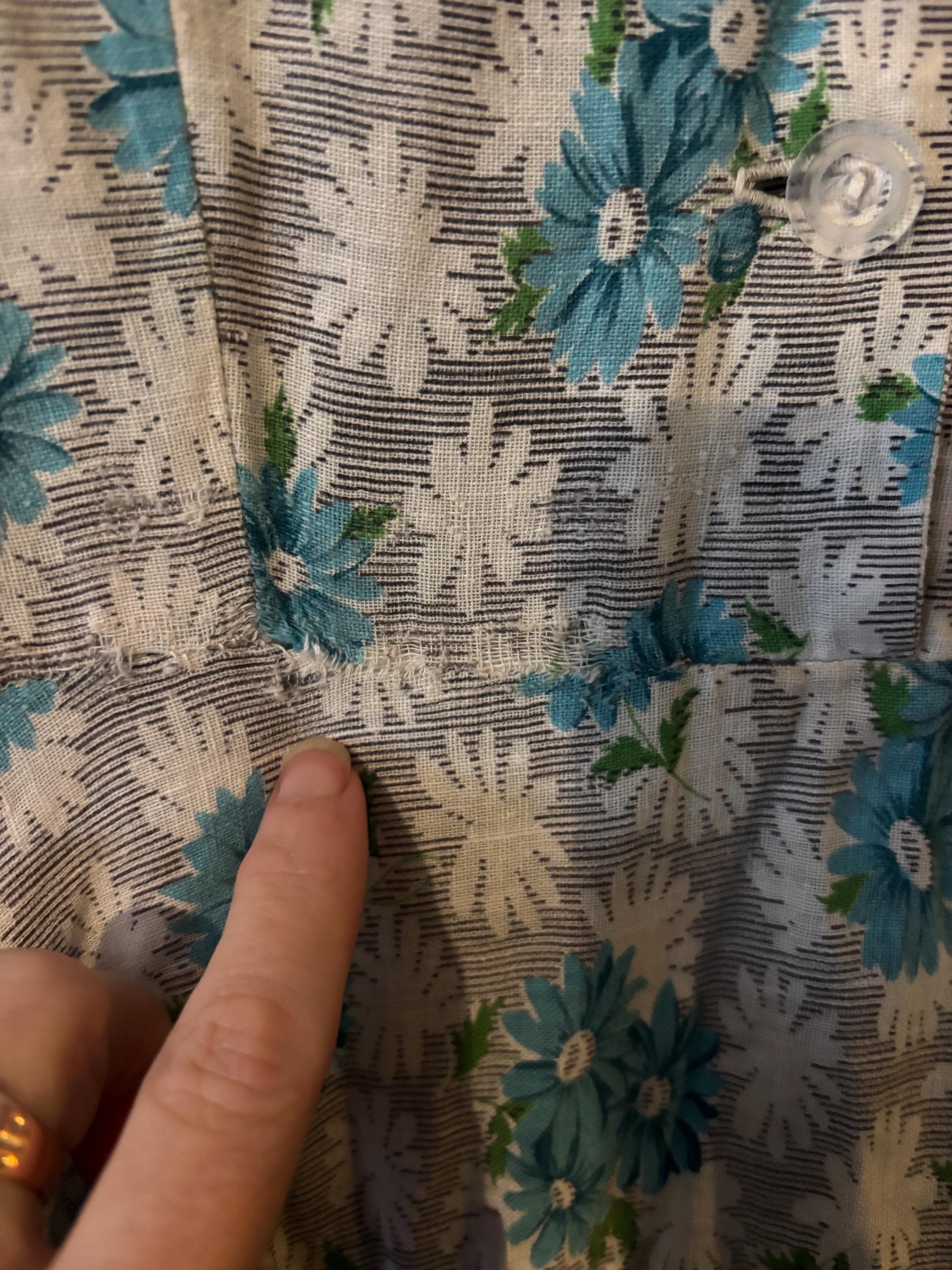 Original late Forties/early Fifties tea dress in a off white/grey/blue daisy print