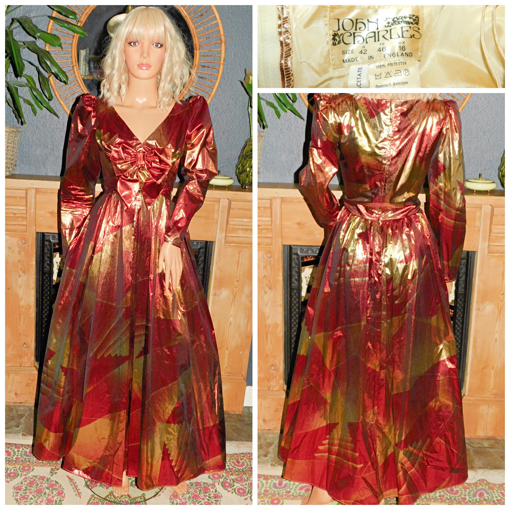 Absolutely Stunning Eighties prom dress by John Charles in a metallic red/orange/gold geometric print