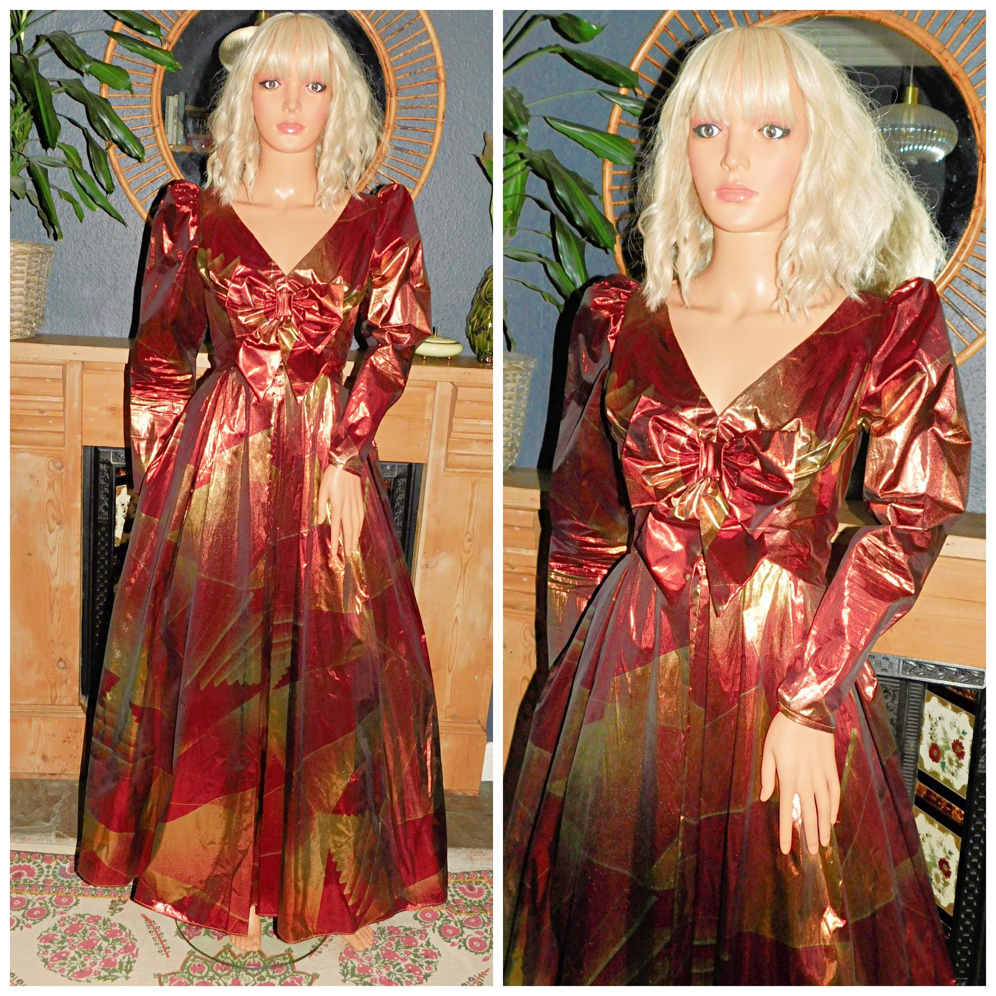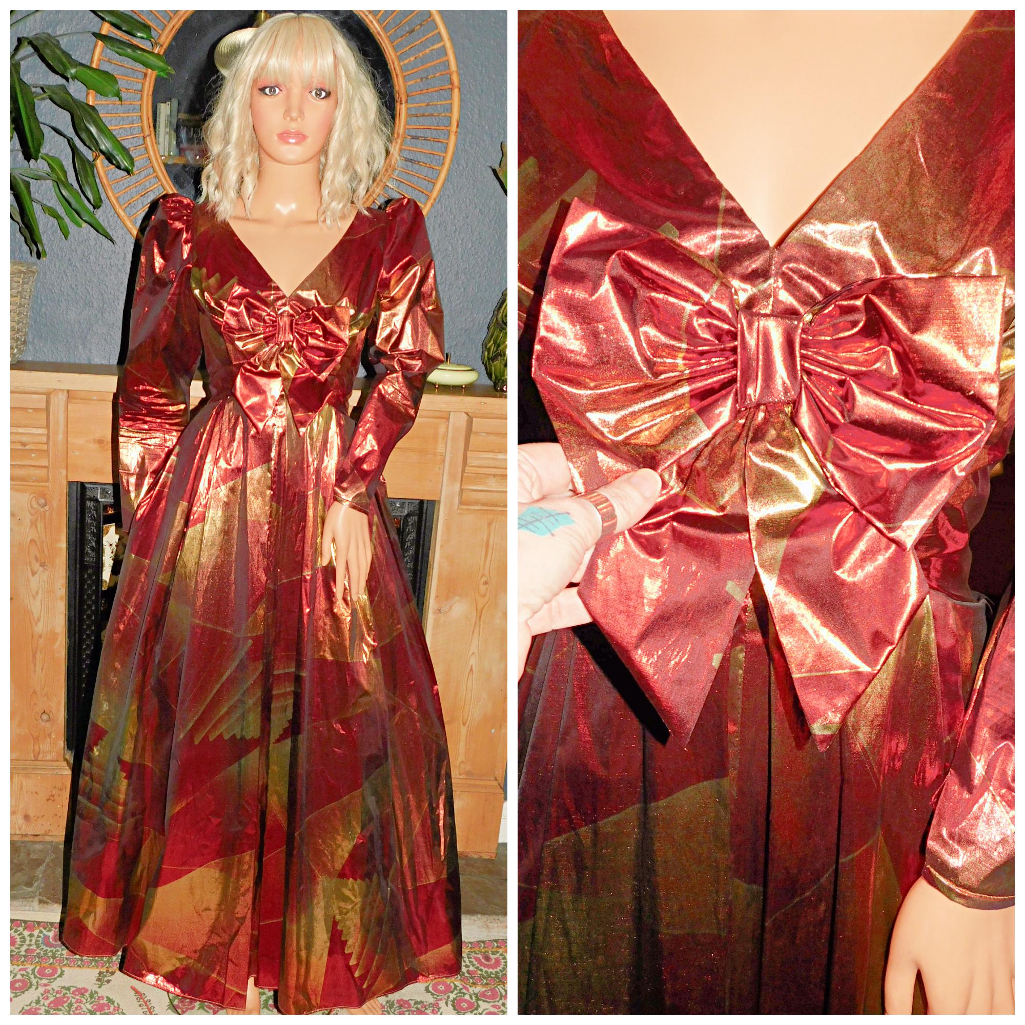 Vintage 80s METALLIC Red GOLD Princess BOW Prom Party Dress 12 14 M 1980s John Charles Geometric