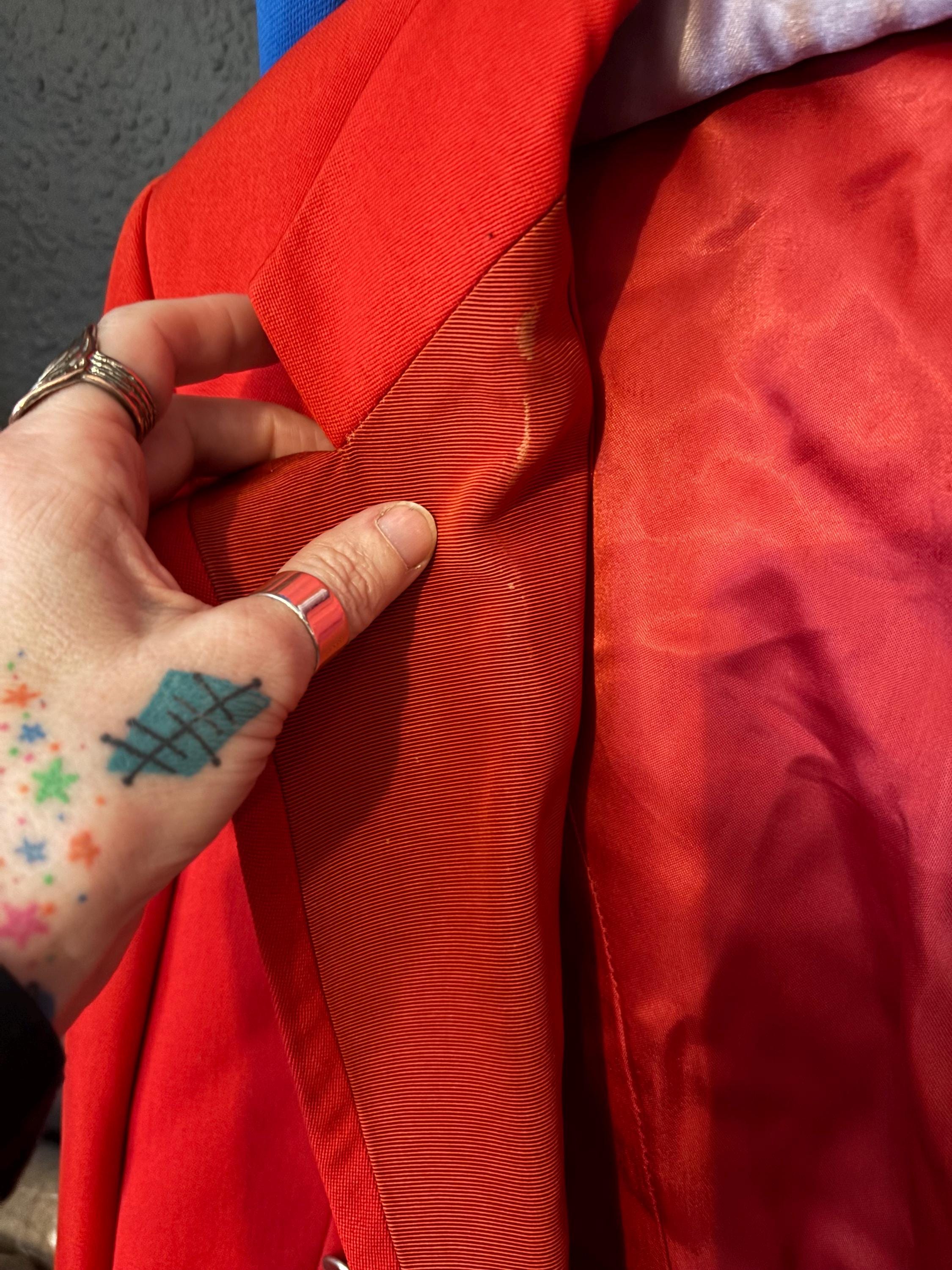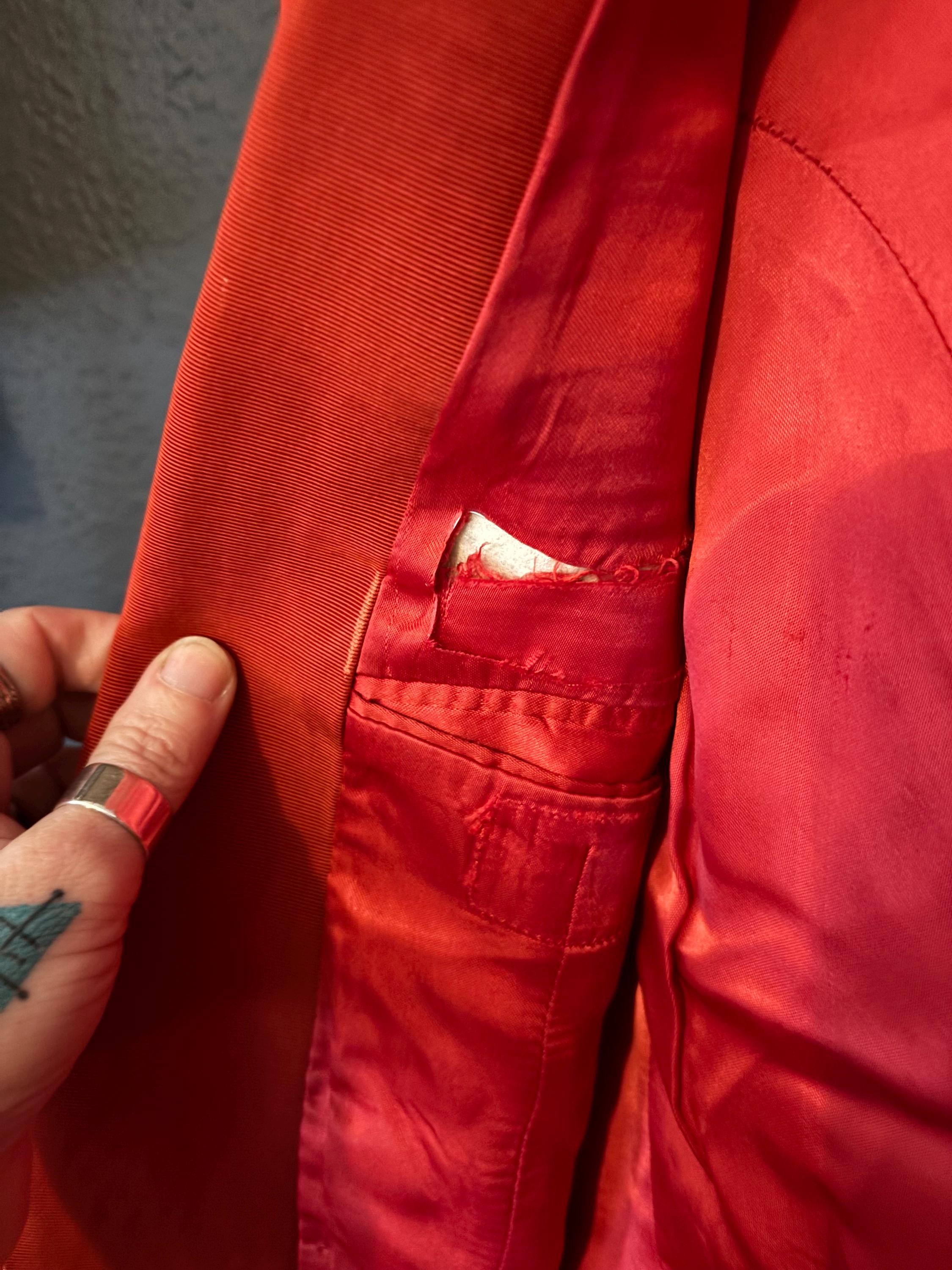 Vintage condition- Good vintage condition...tear to inside lining and some wear to the fabric edge of lapel (see pics)