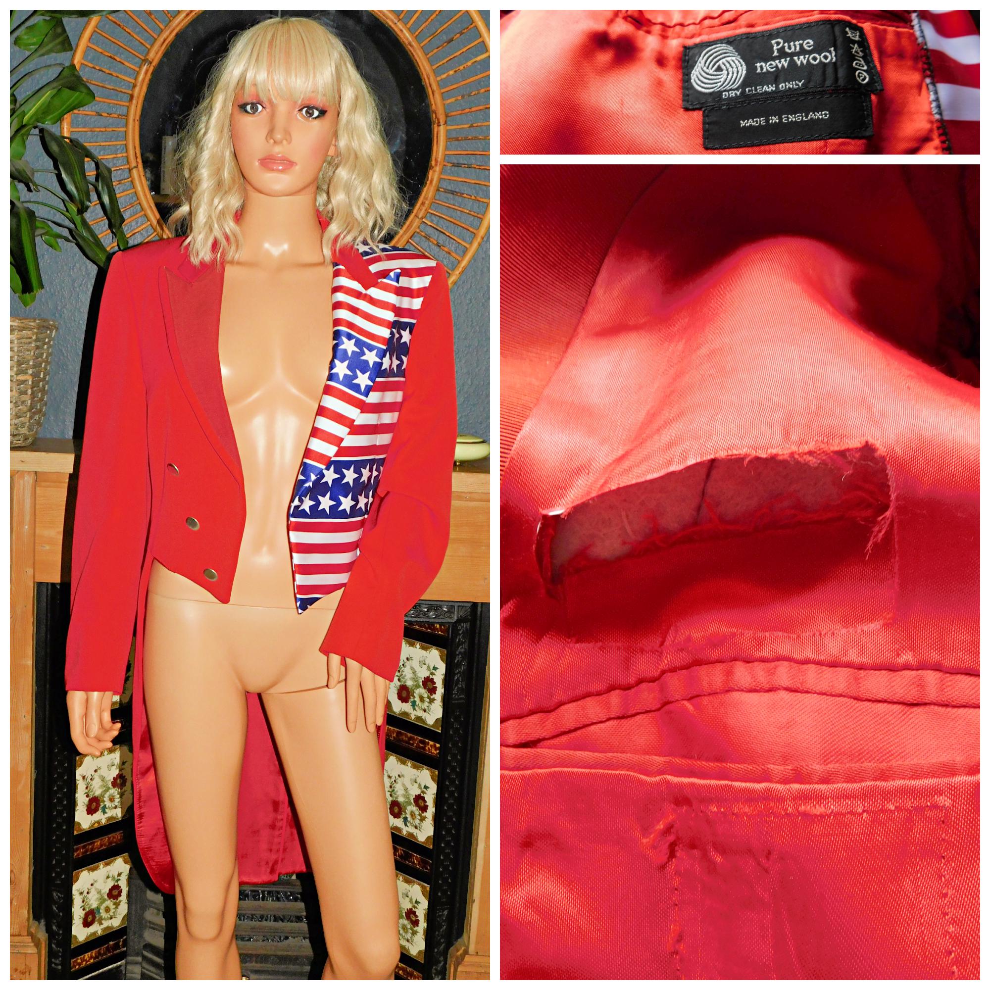 Eighties pure new wool American flag tailcoat....contrast trim to lapel...stars and stripes US flag