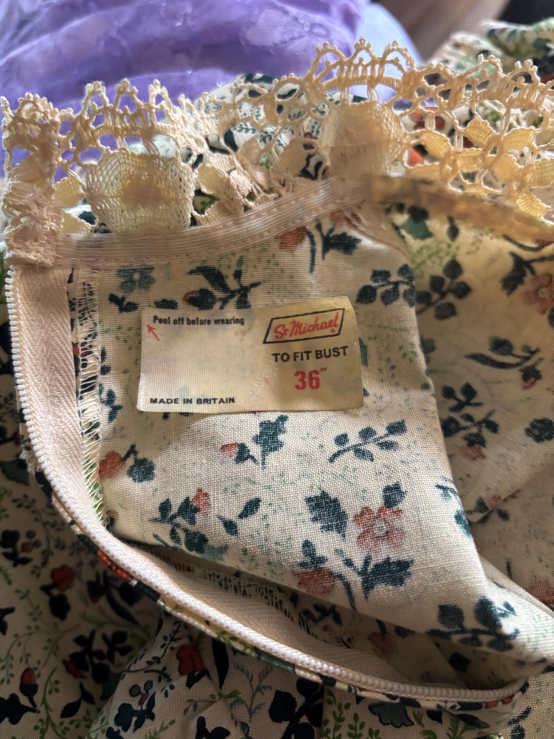 Vintage 70s Ditsy Flower Print VELVET Trim Bohemian Prairie Maxi Dress 10 12 S M 1970s St Michael Victoriana Boho Hippy Floral