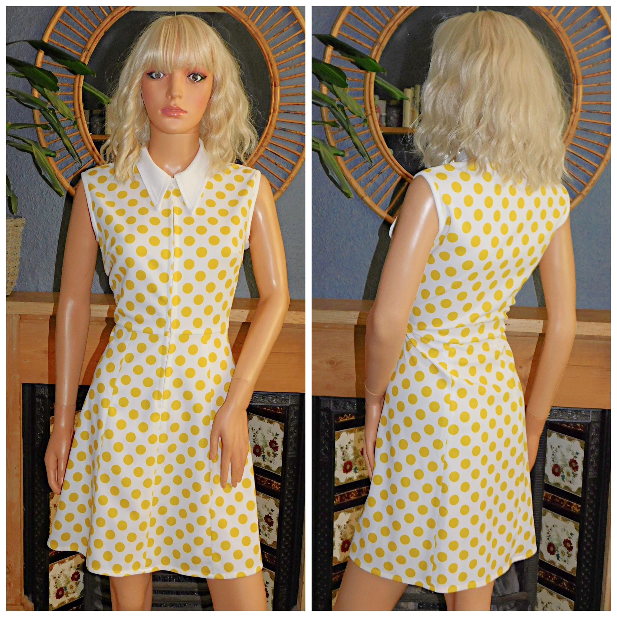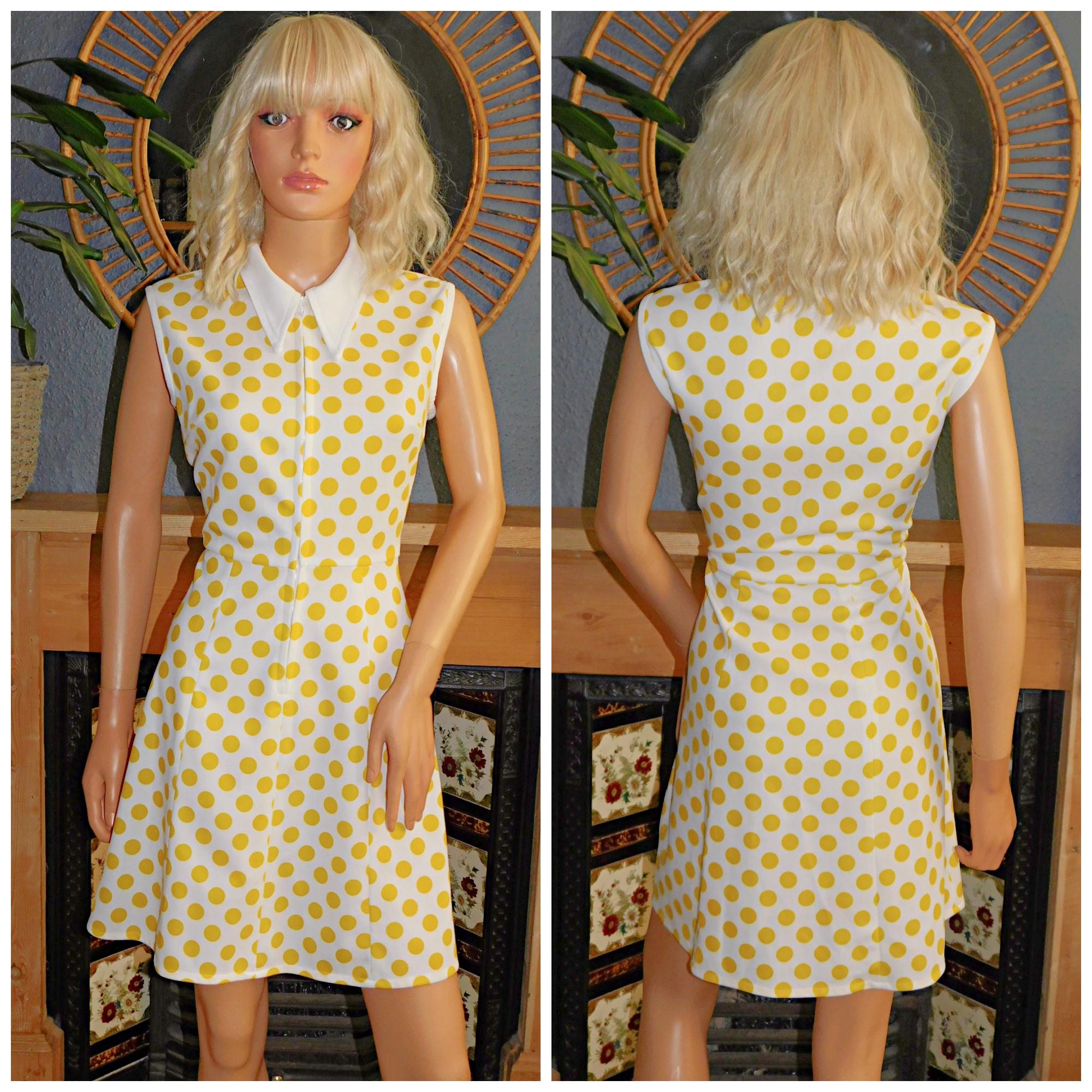 Sixties Mod dress in yellow/creamy white polka dots