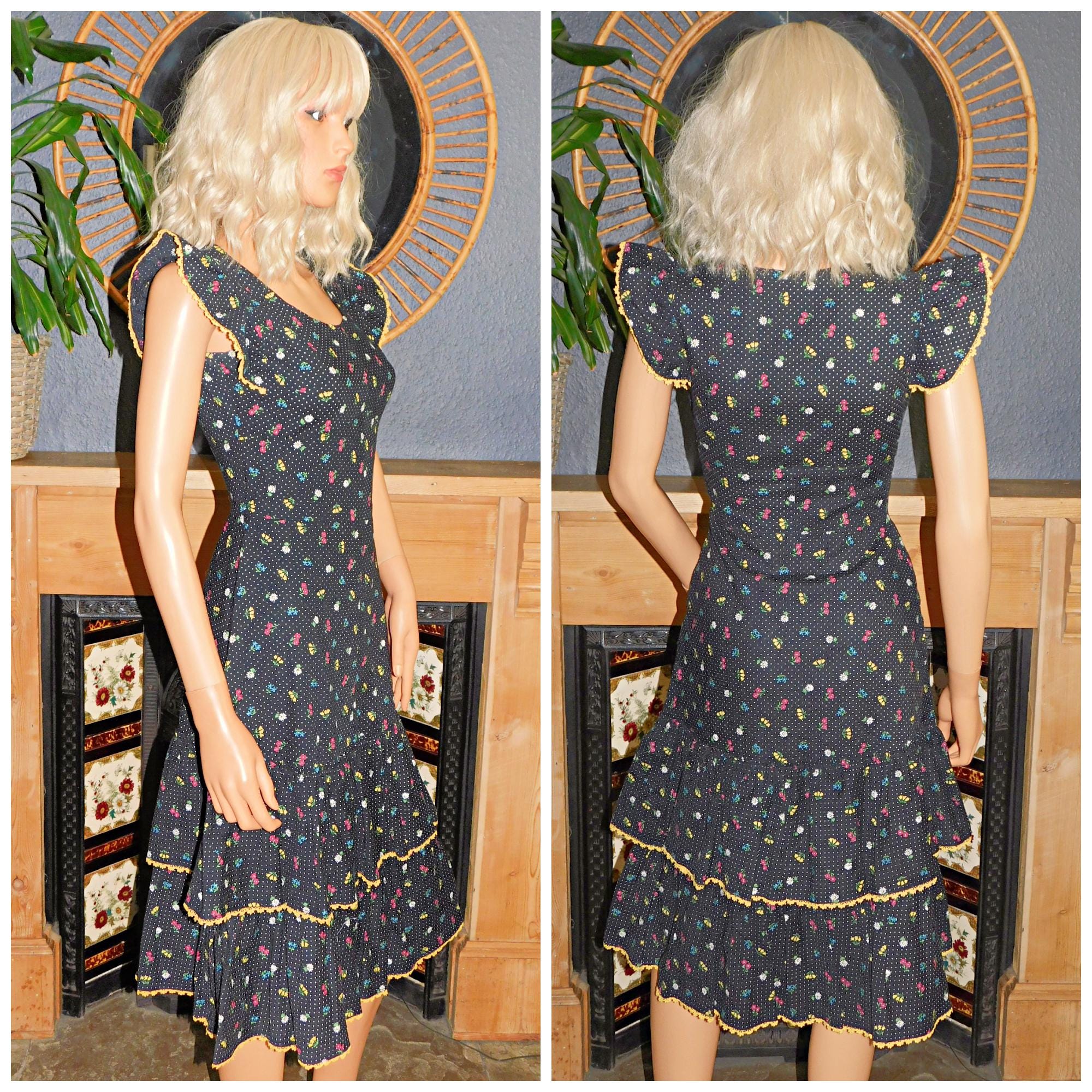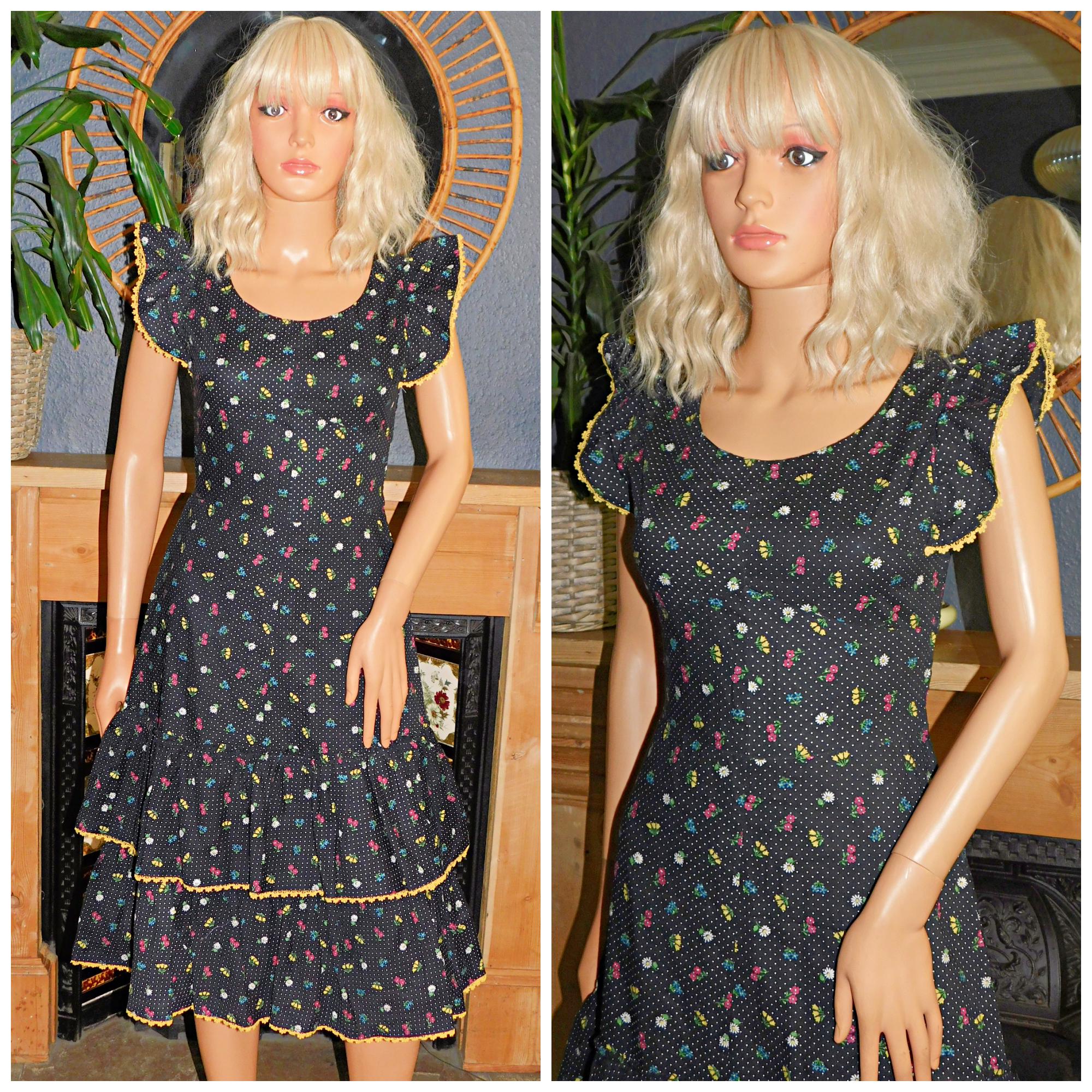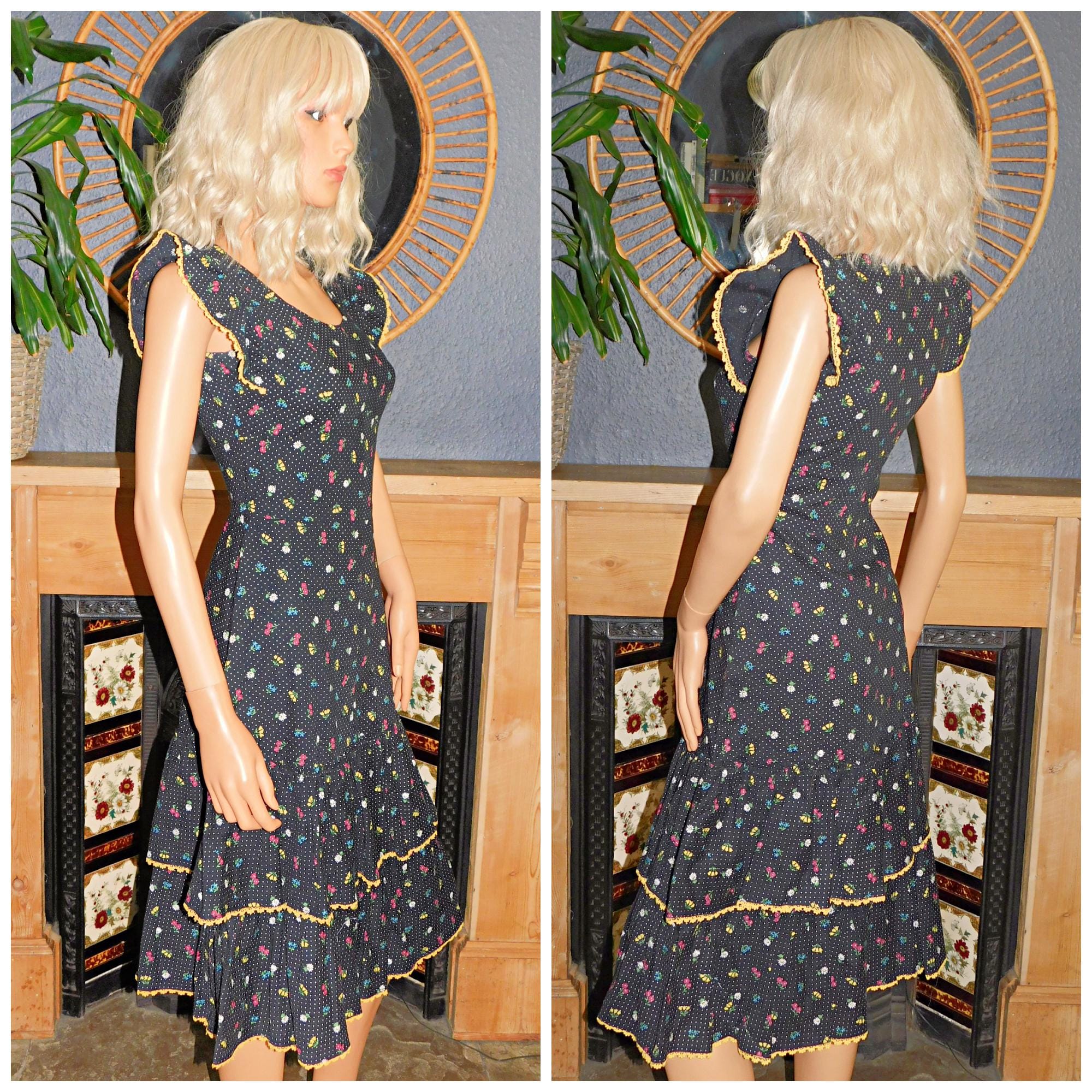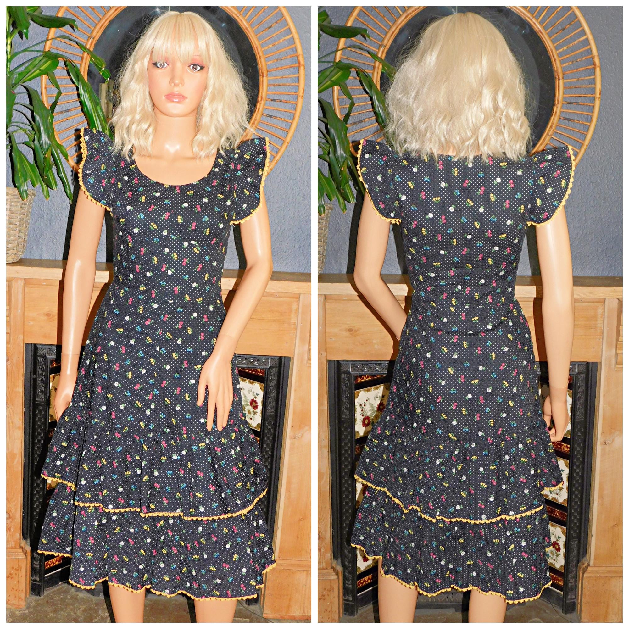 Vintage 70s Bohemian DITSY Floral Tiered Folk Day Dress 6 8 Xs 1970s Boho Hippy