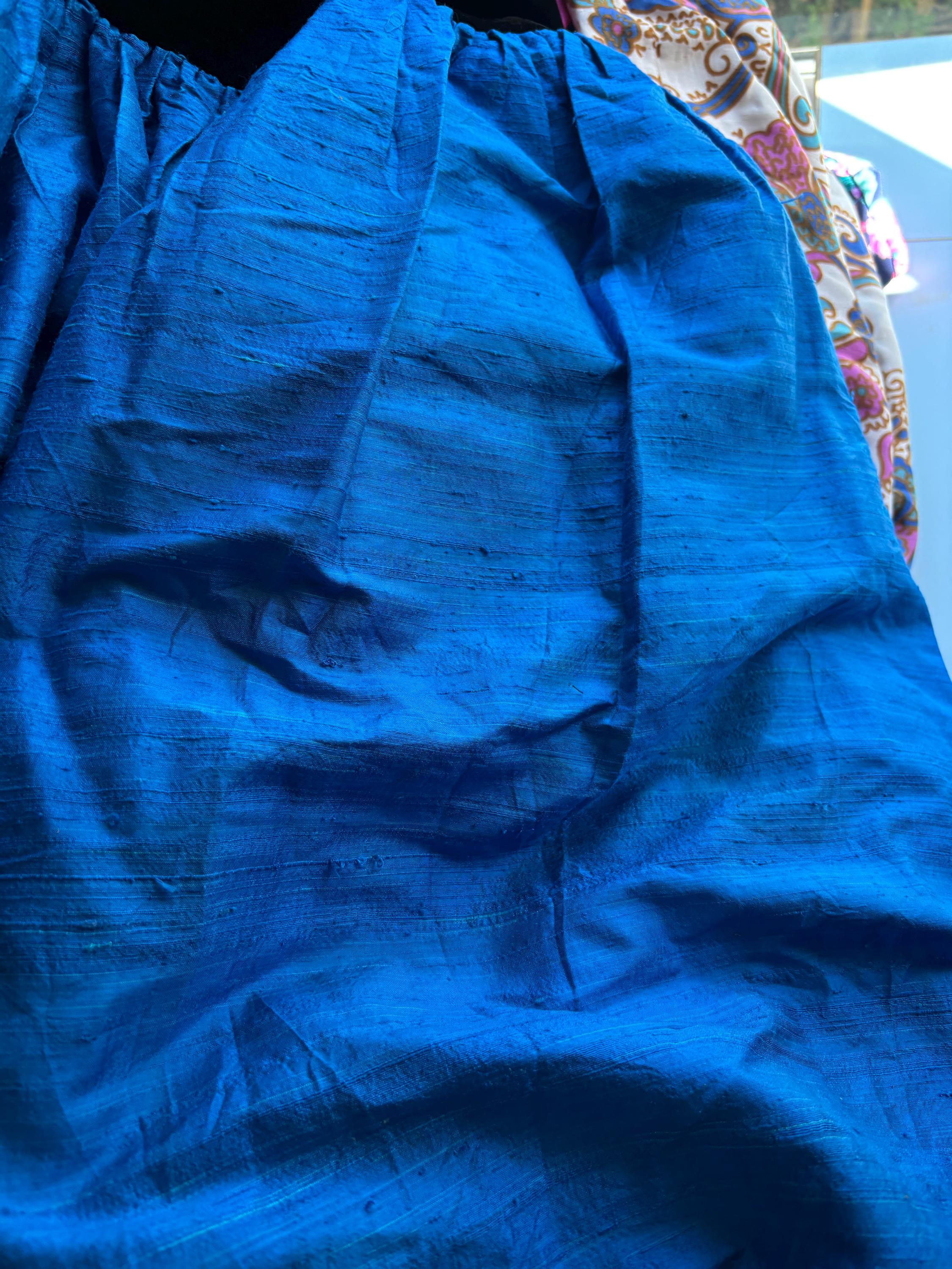 Material label- Silk contrast/mixed fibres..non stretch (dry clean)