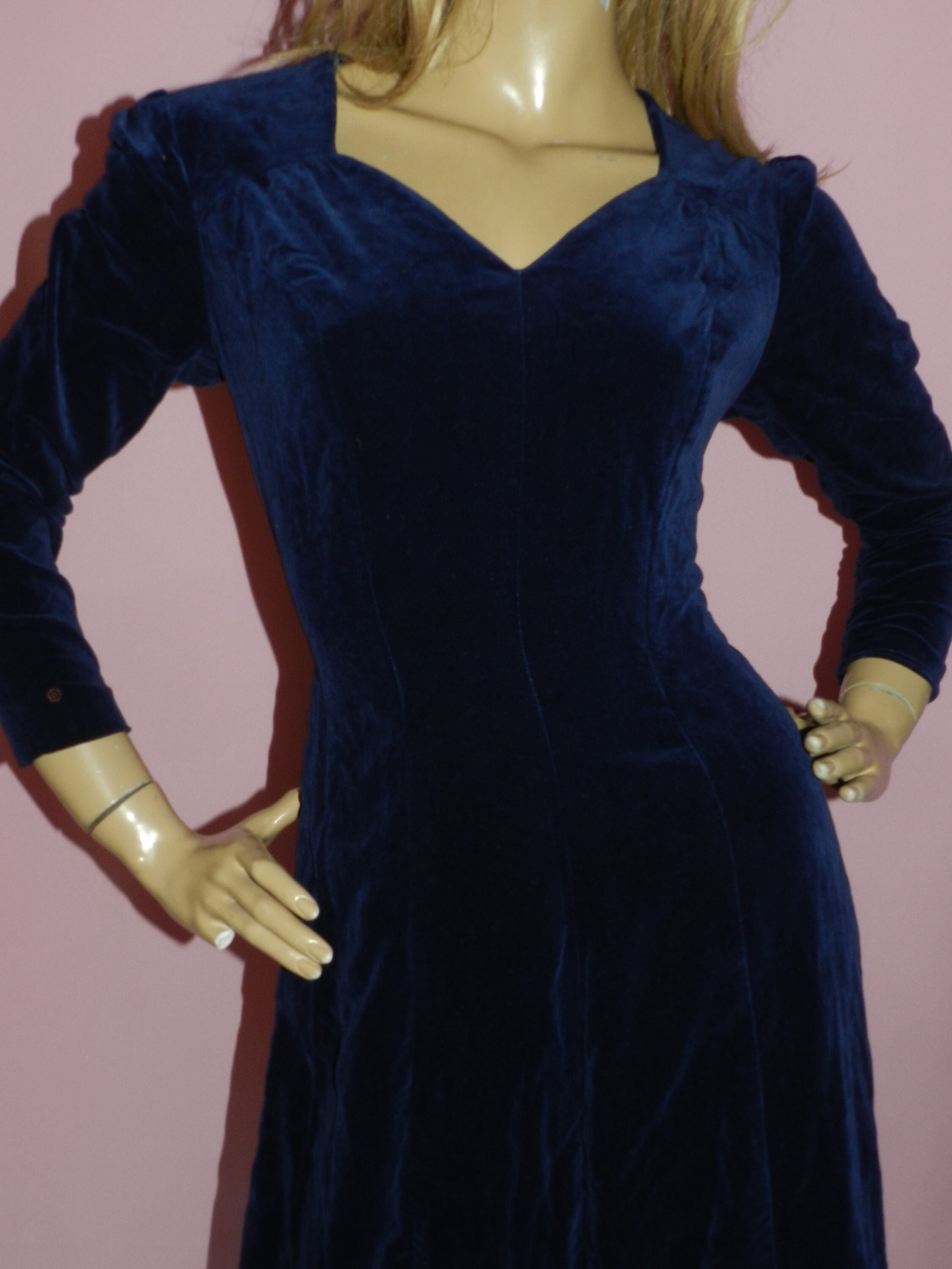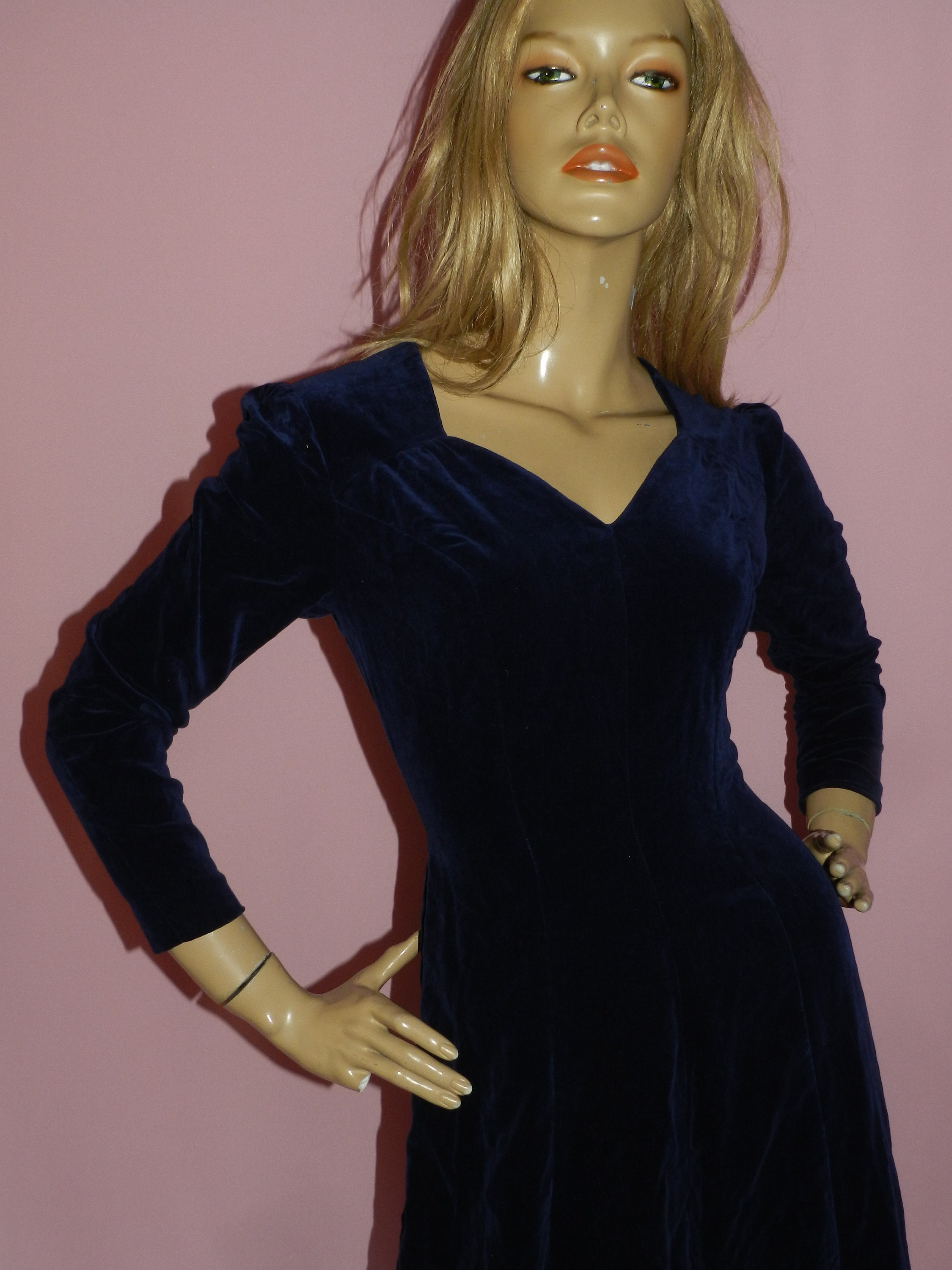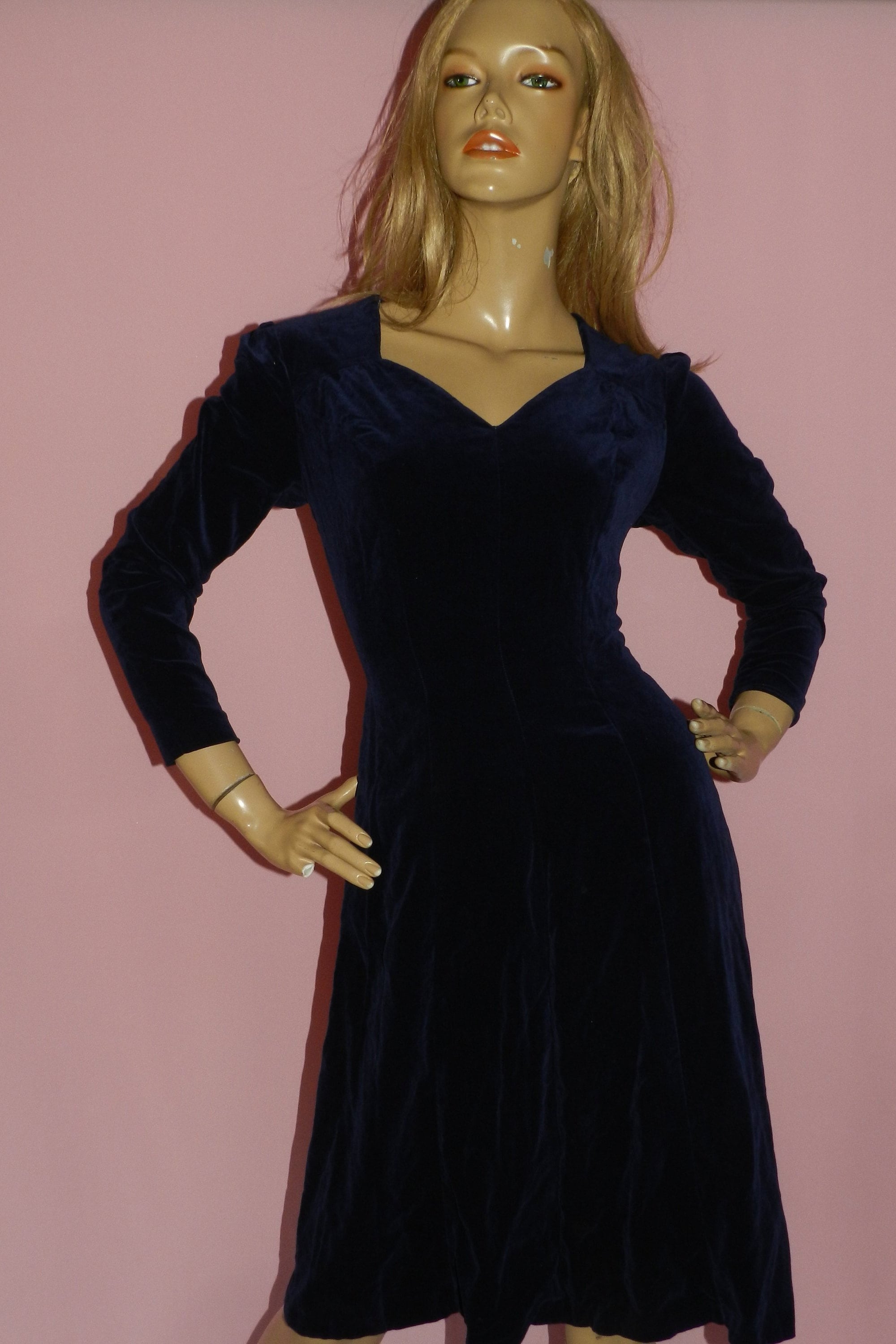 Timeless classic 50s velvet evening/party/cocktail dress in a dark midnight blue