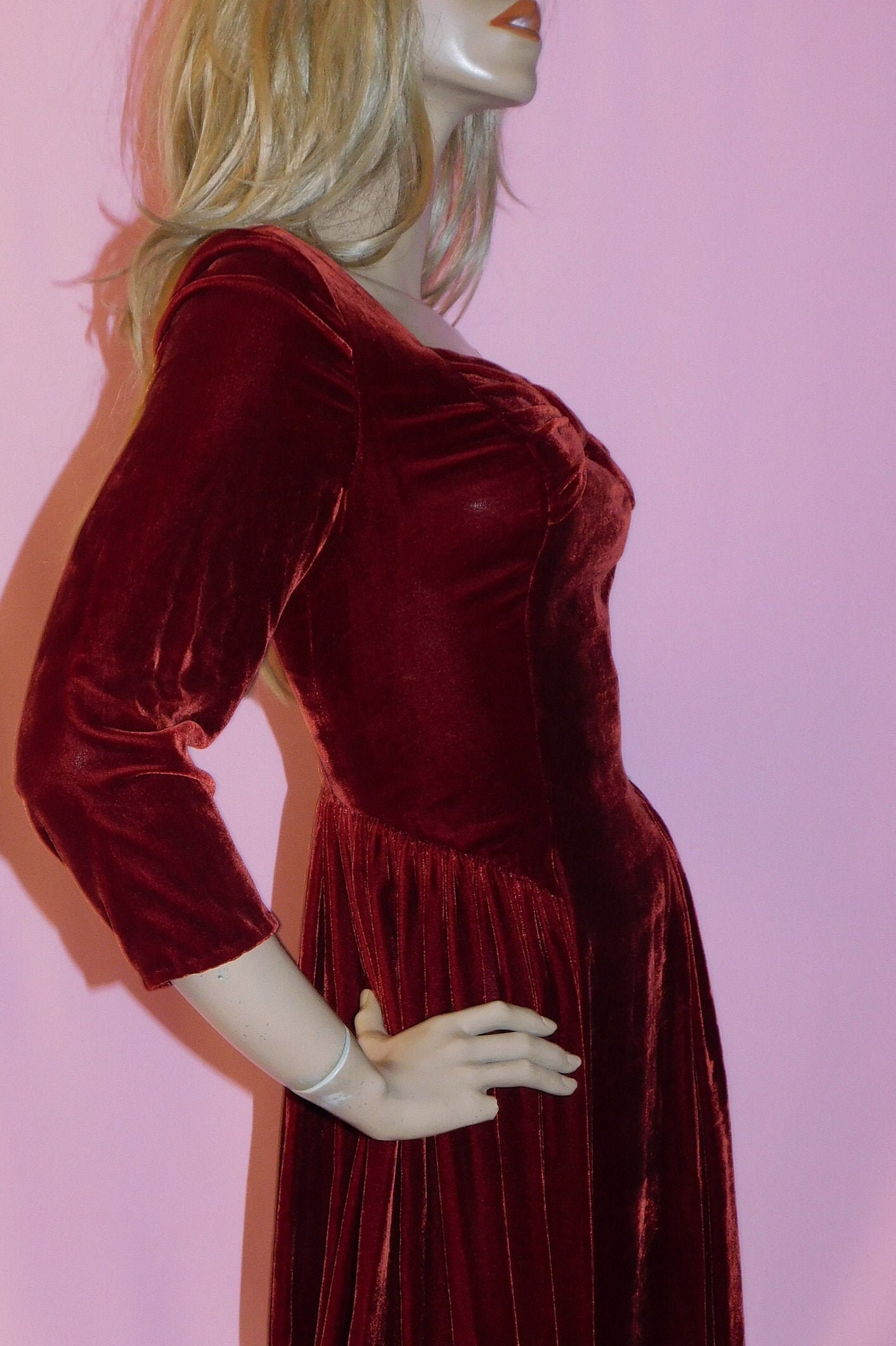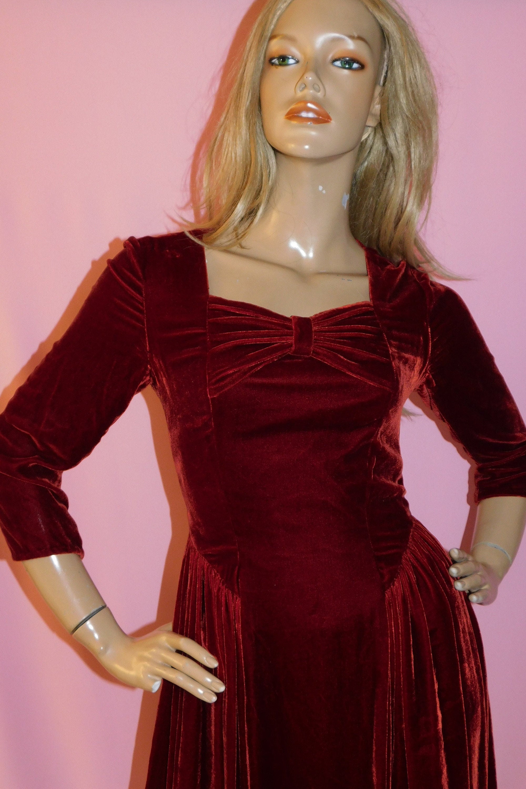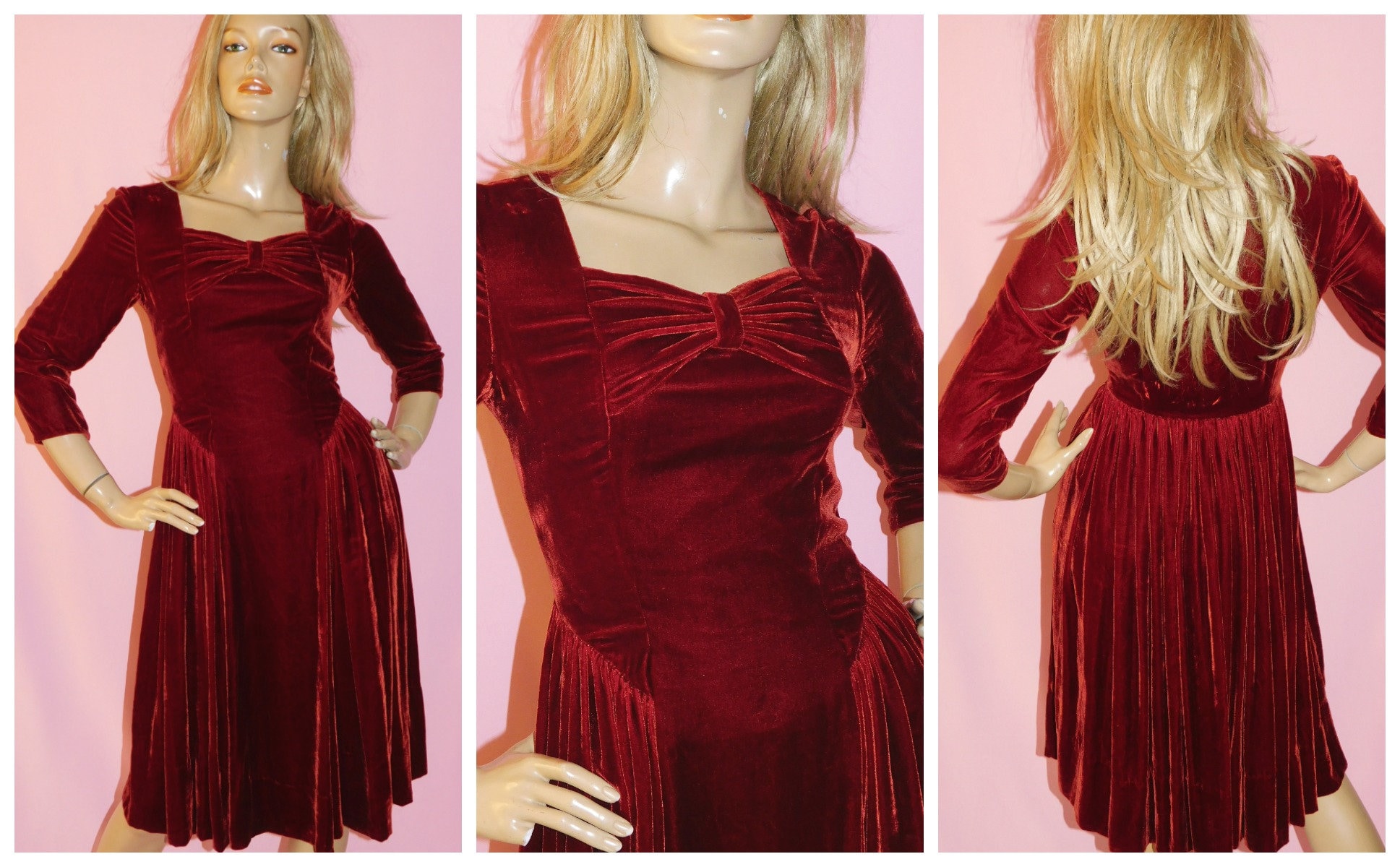 Vintage 40s Deep Rust Red VELVET BOW Cocktail Evening Party Dress 10 S 1940s