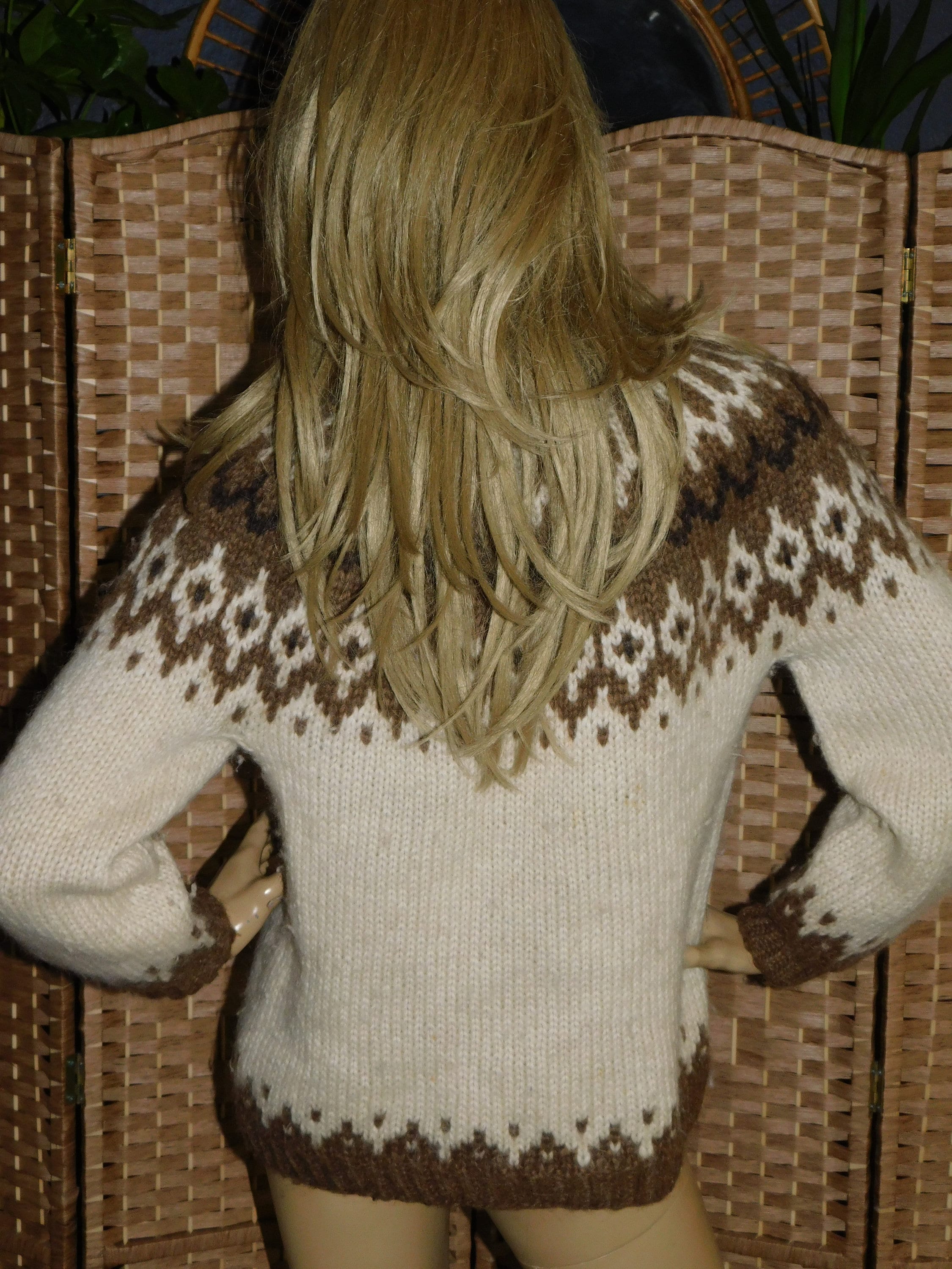Vintage CREAM Brown Wool Icelandic Sweater Jumper S Scandinavian Norwegian Winter Danish